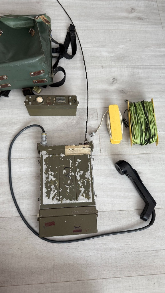 Prodám funkční VKV rádiovou stanici. U stanice nefunguje omezovač šumu (šum ve všech režimu příjmu) Souprava rádiové stanice obsahuje (viz foto): - rádiovou stanici, - dvě zdrojové skříňky s akumulátory (repasované na bezúdržbové olověné 6V akumulátory), - mikrotelefon, - svazkovou anténu 1,5 m dlouhou, - drátovou závěsnou anténu na cívce, - drátovou směrovou polokosočtvercovou anténu na cívce, - brašnu na rádiovou stanici.