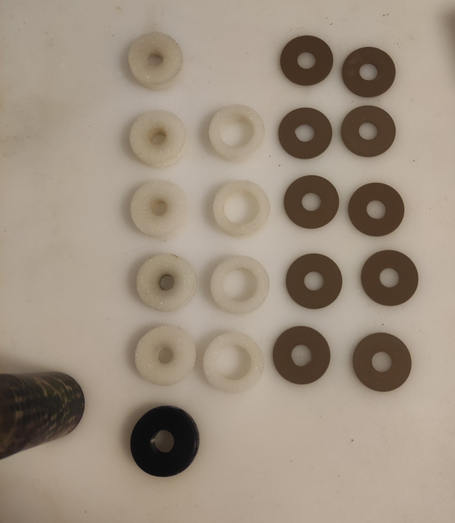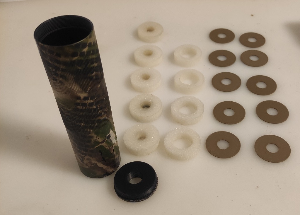 Prodám molitanové vložky do tlumiče pro airsoftové zbraně. Součástí jsou také plastové vystužovací díly. Pro výrobu je nutné zaslat vnitřní rozměry tlumiče - průměr a délku. Tlumič funguje zejména u plynových a HPA systémů u AEG a blowack systémů je přínos vložek sporadická, jelikož zdroj hluku není pouze hlaveň.