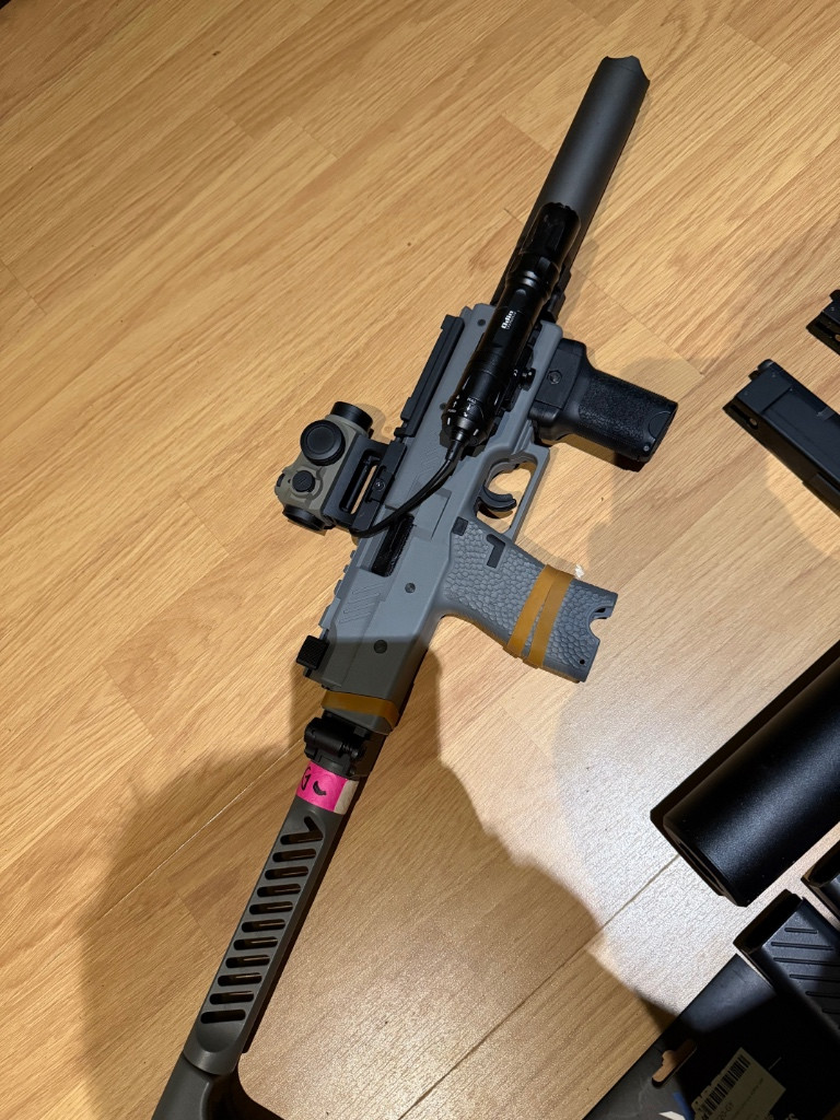 Rád bych nabídl k prodeji tohle plynové smg VMP-1 od Vorsku. Mám k tomu plno náhradních dílů i příslušenství viz foto. Zbraň byla pravidelně promazaná a vyčištěna + vyměněna hop guma od ML super hopup 70 modrá (nyní lze střílet 0,32+ kule). Cenu si představuji kolem 16k za všechno je na fotkách. Pokud by člověk chtěl je zbraň hpa rdy. Parametry: - 1,3J s 0,32 greengas - dostřel 50-60 m Věci na fotkách: - vmp1 osazené s maverick gen 3, tlumič B&T rotex s epes vložkami, grip od FMA, svítilna Olight Odin 2000l s montáží a tlakovým spínačem - 5x zásobník 48 ran - 4x šedý a 2 x černý grip na zásobníky - originál vmp tlumič s adaptérem - náhradní závěr a pažba v černé barvě - sáček s náhradními tryskami, těsnění, pružina k závěru atd… - sumka od Viper tactical Multicam - sumka od tacticalstore Multicam