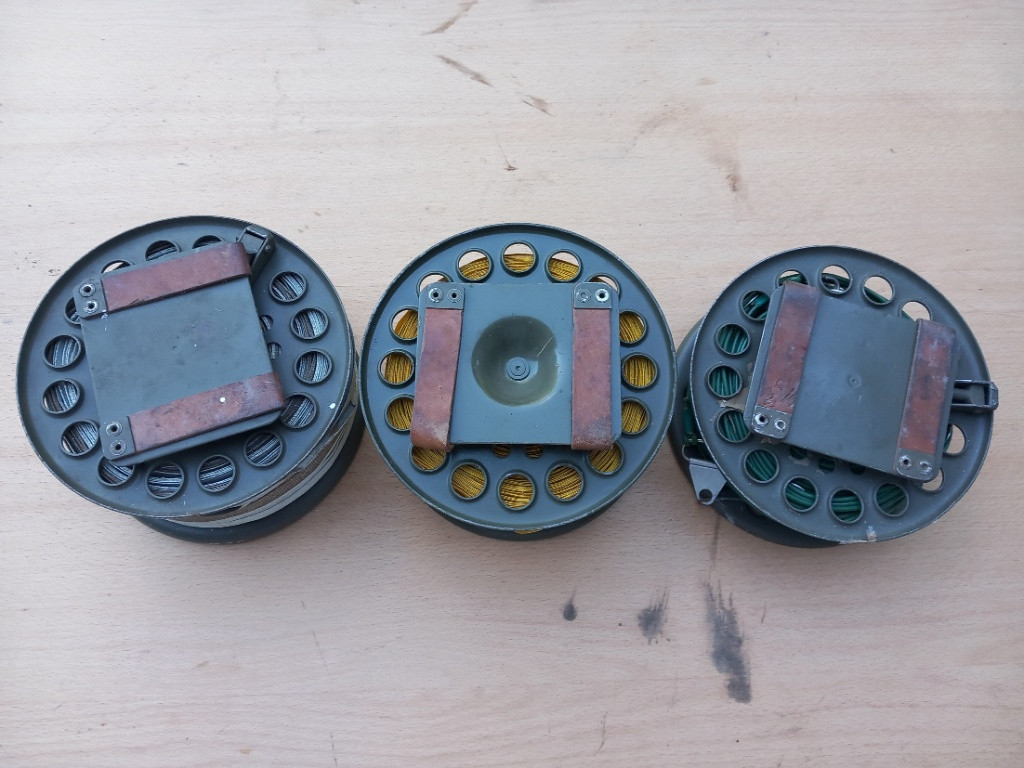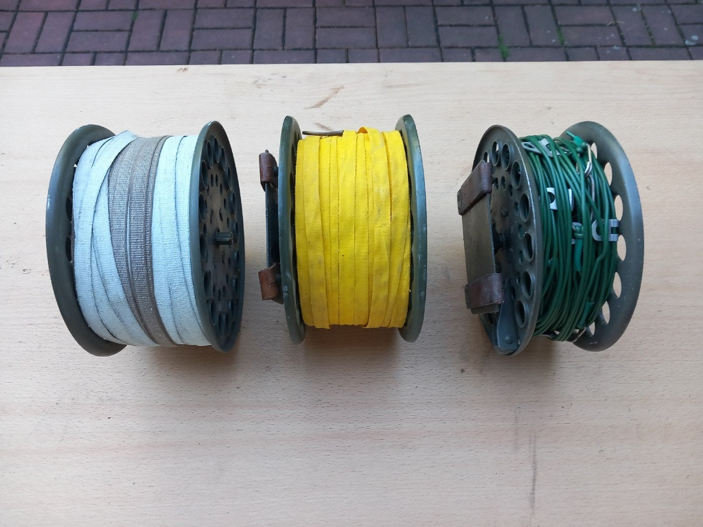 Z levé strany: - Vytyčovací páska na navijáku, 150 m, ze "Soupravy pro zaminování" k označní hranic minového pole. - Vytyčovací páska na navijáku, 150 m, ze "Soupravy pro odminování" k vytyčení pravé a levé hranice odminovaného úseku. - Minový provazec ze "Soupravy pro zaminování" na který se upevňují různé tvary plechových značek, podle kterých se kladou miny. Mám více kusů od každého druhu. Cena je za jeden jakýkoliv kus+poštovné. Podívejte se i na další mé inzeráty. Při koupi více předmětů platíte jedno poštovné.