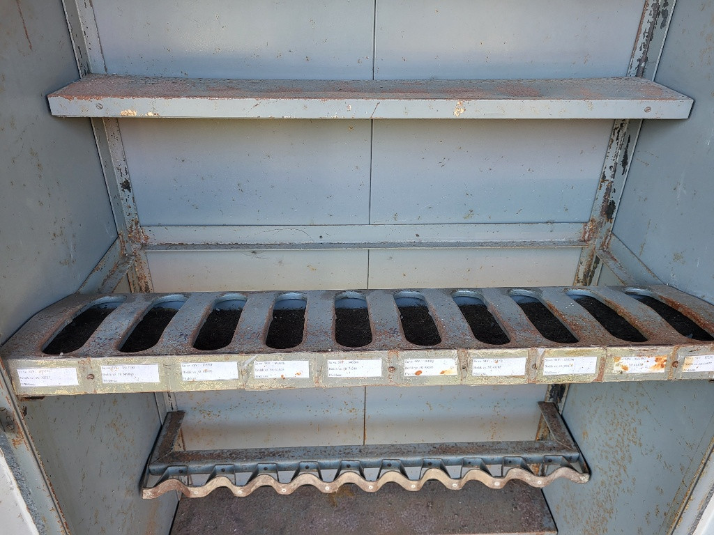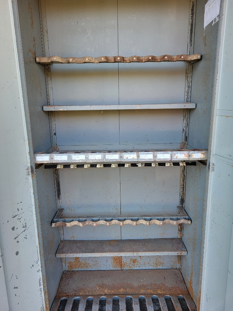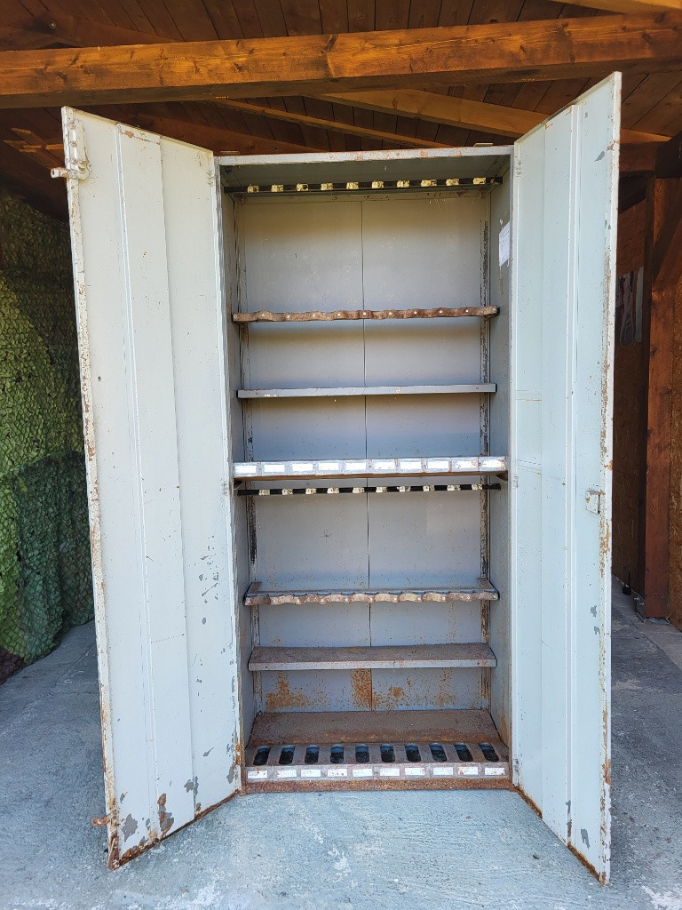 Prodám vojenskou skříň z doby ČSLA na zbraně - samopal 58. Nutno opískovat a nastříkat. Cenu nabídněte.
