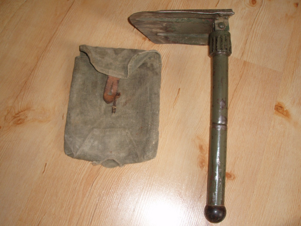 Nabízím tuto vojenskou skládací lopatku s hadrovým krytem,je rozložitelná,vhodná na chaty,do auta nebo při hledání detektorem.Nabízím ji pouze k výměně za nějáké německé válečné věci, nebo z protektorátu, i kopané. Děkuji.