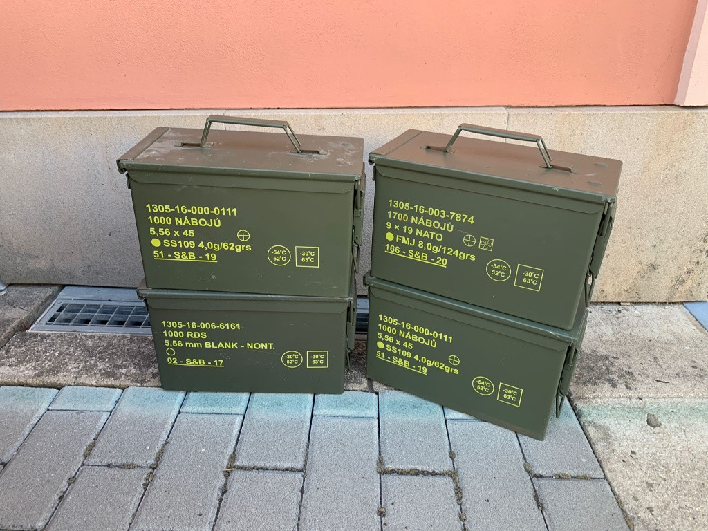 Popis:vojenské bedny M2A1 a m19a1 hermetické plechové
