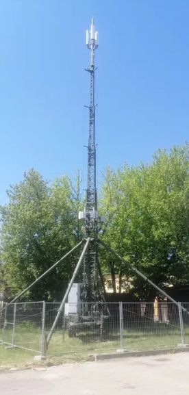 K dispozici mám mobilní stožár o maximální výšce 25 m(stožár nevyžaduje stavební povolení). Rok výroby: 1989. VYBAVENÍ: Lankový naviják (24 V) Podvozek jednonápravový s parabolickým pérováním Silniční i maskovací osvětlení Pneumatická brzda Nastavitelný vojenský závěs POUŽITÍ: Mobilní stožár umožňuje rychlou instalaci: digitálních rádiových linek, sektorových antén, GSM antén, všesměrových antén, zařízení pro měření větru, kamer, internetových antén atd. CHARAKTERISTIKA: Stožár je namontován na jednonápravovém přívěsu vhodném pro jízdu po silnici i v terénu. Instalace stožáru nevyžaduje předchozí přípravu terénu. Stožár je samonosná konstrukce opřená o podpěrná ramena. Rozvinutý stožár nevyžaduje táhla ani kotvení do země. Výšku stožáru lze plynule regulovat v rozmezí od 10,3 m do 25 m. Stožár mám v Polsku - závoz není problém Rozvíjení a stahování stožáru je automatizované a probíhá pomocí elektrického navijáku napájeného z vlastní baterie. Konstrukce stožáru umožňuje montáž zařízení a antény na vrcholu stožáru o celkové hmotnosti 150–180 kg.