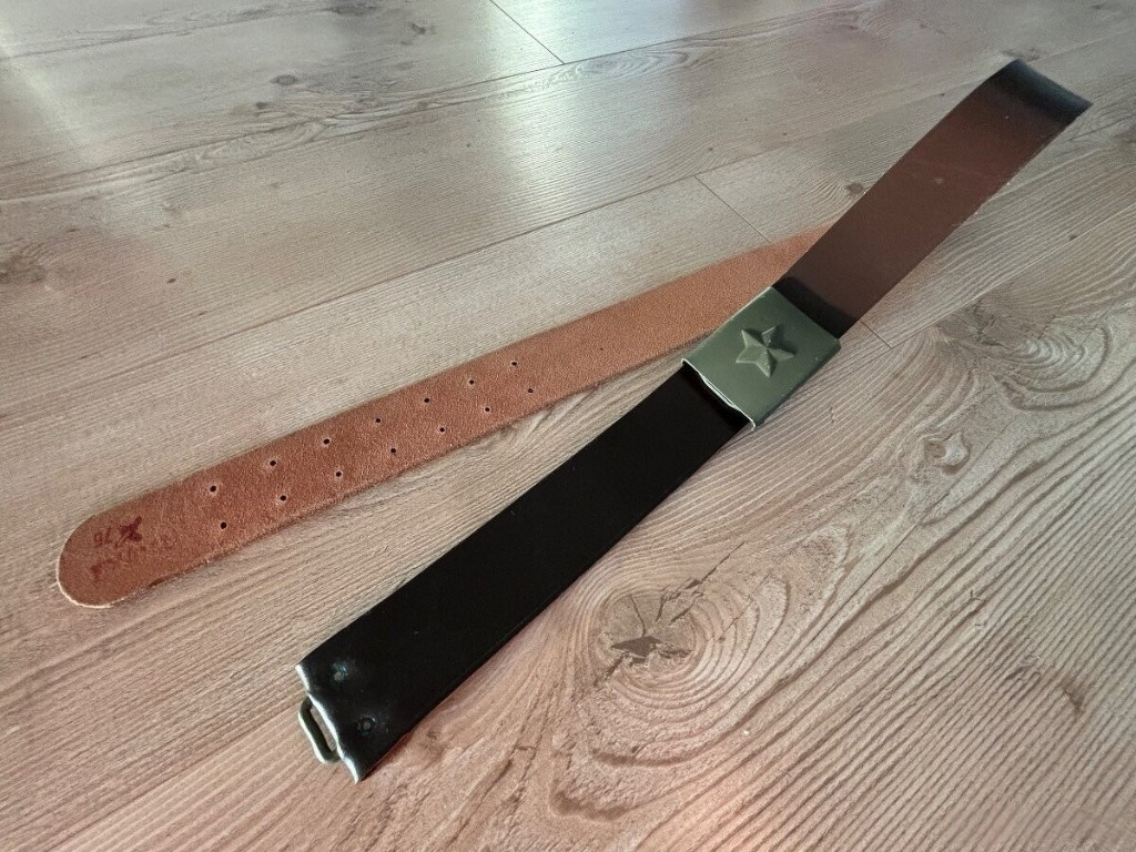 Prodám kvalitní vojenské opasky, řemeny vzor 60. Jsou úplně jako nové, nepoužívané, kůže je stále pružná, poddajná a krásná. Opasky jsou velmi kvalitní doplněk, určitě znáte z vojny, lze na ně přidat kožené posuvky (také v nabídce) nebo na ně cokoli zavěsit. Pro „veterány z vojny“ skvělý a praktický vánoční dárek. Dostupné délky: 90 cm – 250 kč 100 cm – 250 kč 110 cm – 375 kč 120 cm – 750 kč Posuvka – 25 kč / ks Uvedená cena je včetně přezky s hvězdou! V případě zájmu mě prosím kontaktujte soukromou zprávou. Mám k dispozici více kusů. V případě zájmu mě neváhejte kontaktovat telefonicky (PŘEDVOLBA +421 !!!!) nebo zprávou.