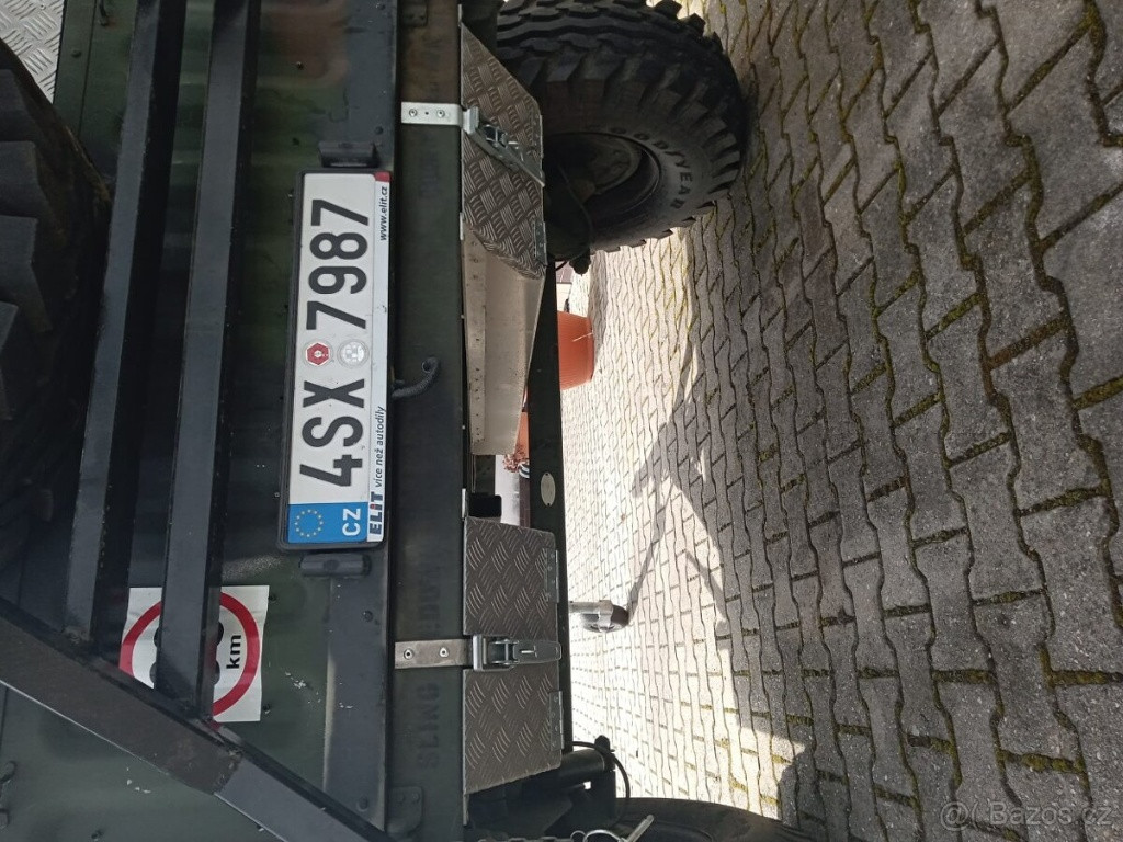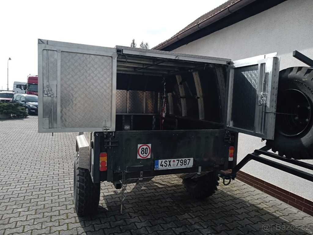 Robustní a odolný přívěs,armádní, offroad, velká nosnost vhodný za terénní vozidlo, na práci nebo přestavbu (expediční, camping). nosnost cca 880 kg celková hmotnost 1540 kg vlastní hmotnost cca 660 kg max. zatížení oje 113 kg pevná armádní konstrukce velký ložný prostor Přívěs je v dobrém stavu.