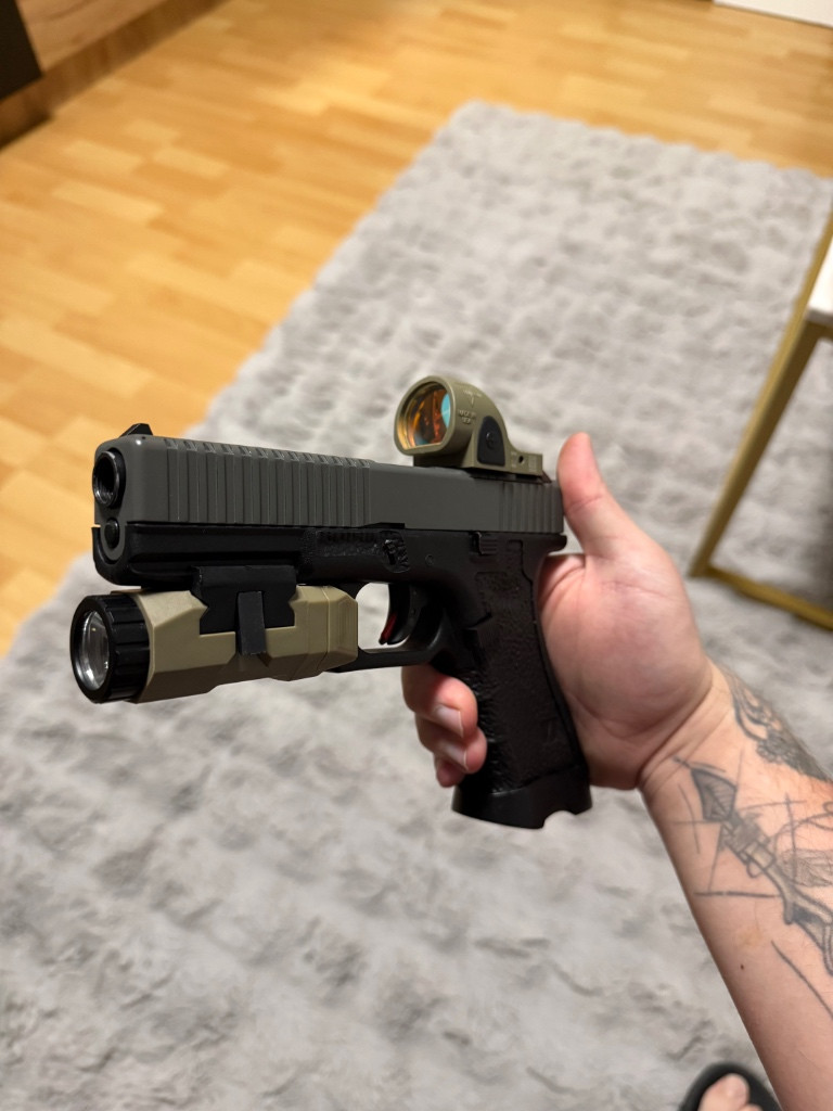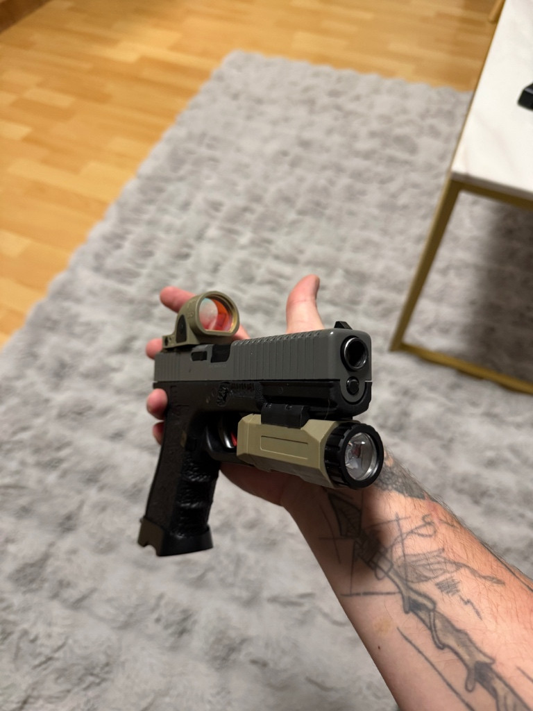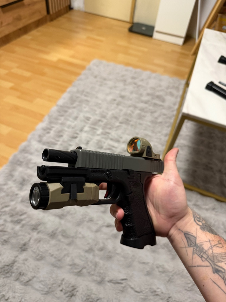Prodám tuhle krásku od vorsk. Zásobníky jsou k ní dva ale rok leželi takže těsnění v prdeli replika Trijicon z polymeru funguje perfektně APL svítilna může být součástí (+500) ale pokud nechceš nevadí mohu přidat kydex a nějaké součástky navíc! Zbraň plně funkční jen zásobníky bída