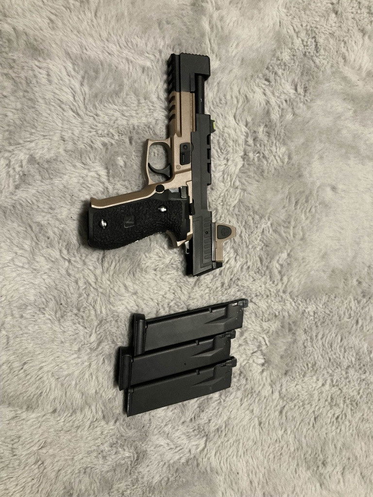 Zdravím! Uvažuji o prodeji své krásky – případně i o výměně, ale spíš to vidím na prodej. Zbraň je stále v záruce. Součástí jsou 3 zásobníky, z toho dva potřebují přetěsnit (nemám teď čas to řešit). U jednoho zásobníku chybí spodní krytka, ale na funkci to nemá žádný vliv. Cena: cca 5 000 Kč (původní pořizovací cena byla 5 600 Kč) – jsem otevřený dohodě. V případě zájmu pište na uvedené číslo. Zásilkovnou mohu poslat při úhradě poštovného předem.