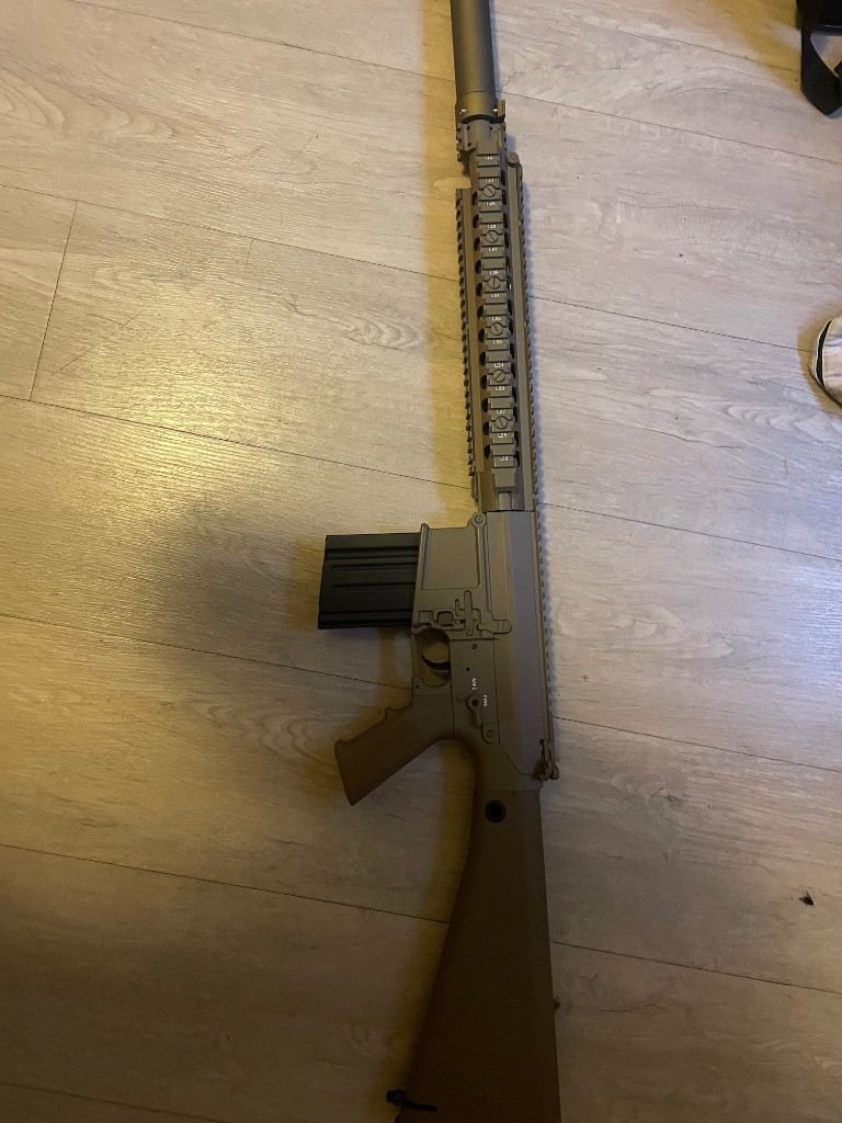 Ahoj bando zjistil jsem že mám na airsoft míň času než jsem si myslel a prodávám tady aeg sr25 od firmy east crane je to základ nic jsem s tím nedělal dám k tomu 3 zásobníky 1 byl v krabici plus lipolku s nabíječkou, double eagle brokovnici plynovka se 3 brokovímy náboji má to přepinač na výstřel ze 3 kuliček na 6 kuliček a jako poslední we hk416 nemám ji dlouho byla na 2 akcích po každé akci vyčištěna vnitřek ratech silnější pružina v bufferu krásnej chod plus nějaký ten nástřik dodám 3 klasické zásobníky + 1 předělaný na hpa ventil tenhle výkend celek za 15 tisíc pište sms/whatssup