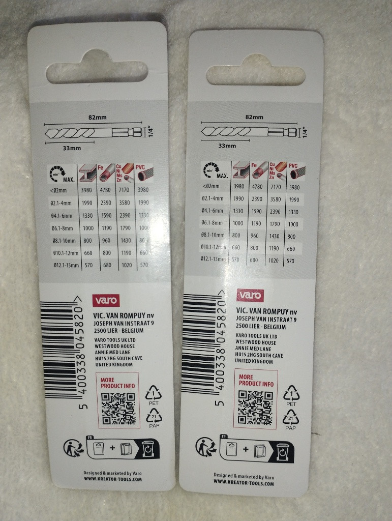 prodám 2 ks sady jsou nepoužité a neotevřené KREATOR 2 ks HSS Vrtáků do kovu HEX 3.0 x 82 mm KRT011304 Vrták - kuželový, průměr 3 mm, délka 82 mm, určení kov, upínání šestihran, materiál HSS cena za sadu 35 kč +poštovné