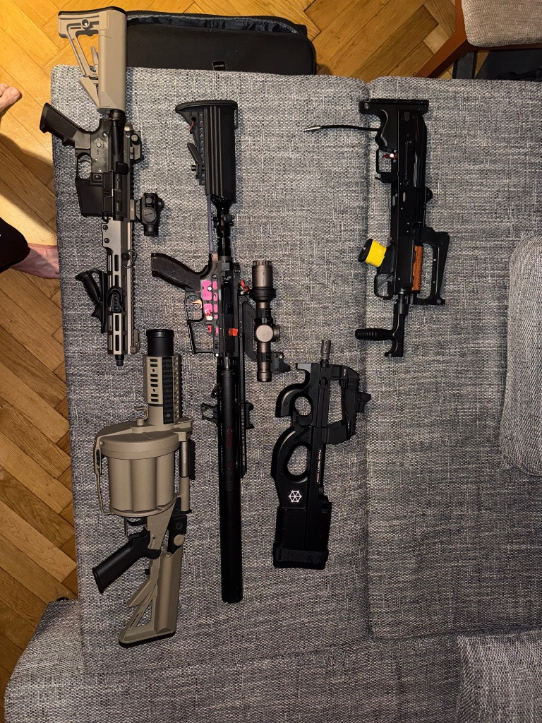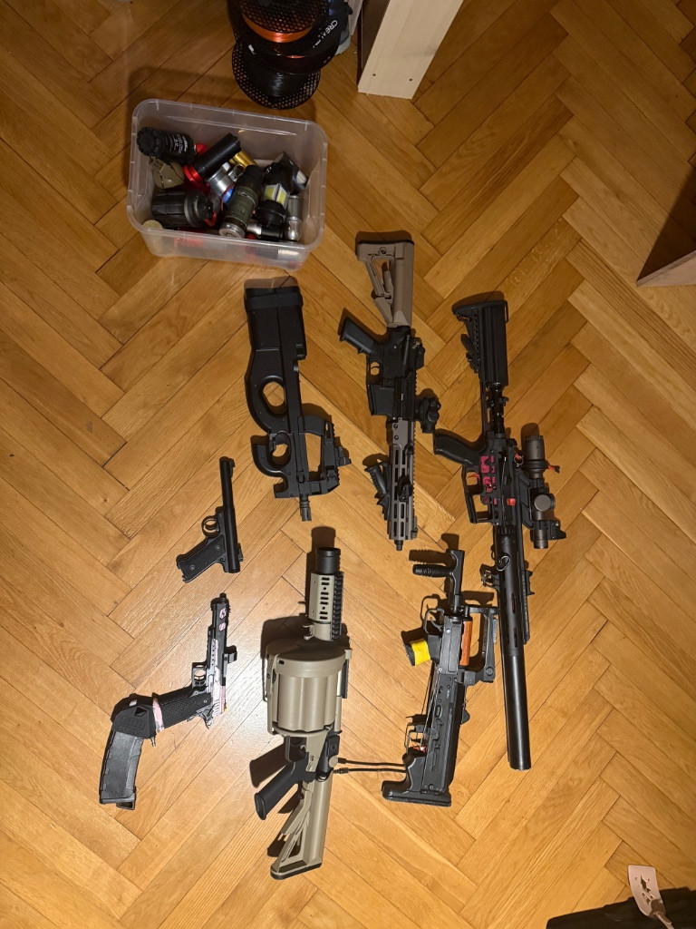 Zdravím prodám co je na foto a spoustu dalšího jen orientačně: k jednani P90 full UP aeg 7k MWS GBBR se spoustu příslušenstvím 3 zásobníky + hra adapter a nějaká zavazicka a pružiny trysky 8.5k groza HPA diy výroba mancraft engine a základ po blue aeg 5.5k 6 ranný granátomet s několika granáty cca 12 patron + 40 mike a master mike dodal gratis taninn patronu+ naboje cca 15 ks 8.5k HPA F2 6.02 hlaveň maxx hopka i spoustak hpa v tubusu pazby vortex optika + scopeswitch 120 psi = 2.4J s 36 cca 20k nechci na tom vydělat pouze končím kvůli nedostatku času a najít si jiných zálib preferuju osobko kde se můžete podívat na zbytek pro toho kdo si vede vice věci pridam nasvětlovací tlumic s kouřovou jednotkou - normálně nesehnatelné klidně mi napište vaši nabídku ceny + o co by jste měli zájem je tu toho vice každý si najde to své
