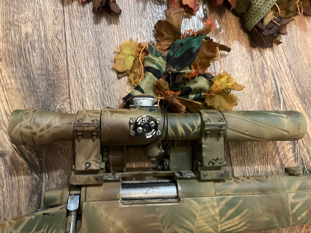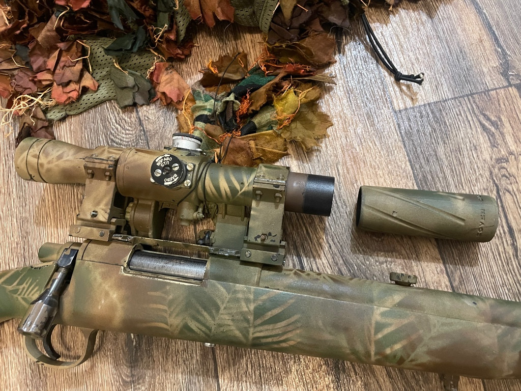 Jedinečný kus v super upgradu. Hlaveň PDI 6,05 Originální PSO optika upravena na RIS listu na zakázku udělaná montáž Na zakázku dělaný kill flash s krycím sklem Vodici trn od Carlose Píst od Carlose Natahovací páka od Carlose Tlumič od Carlose (1.serie) VSR10 Hop up Chamber Náhradní díly: HopUp gumička VSR-10 červená Vodící kroužky válce pro VSR-10 / T10 3x zásobník 3x pružina (na jedné dává zbraň 1,9 J, na druhé 2,64 J, na třetí 3,2 J) Airsoftpro píst + trn Přidám maskování na hlavu/ ramena homemade Dohodě o ceně, popr, prodeji zbraně bez optiky se nebráním.