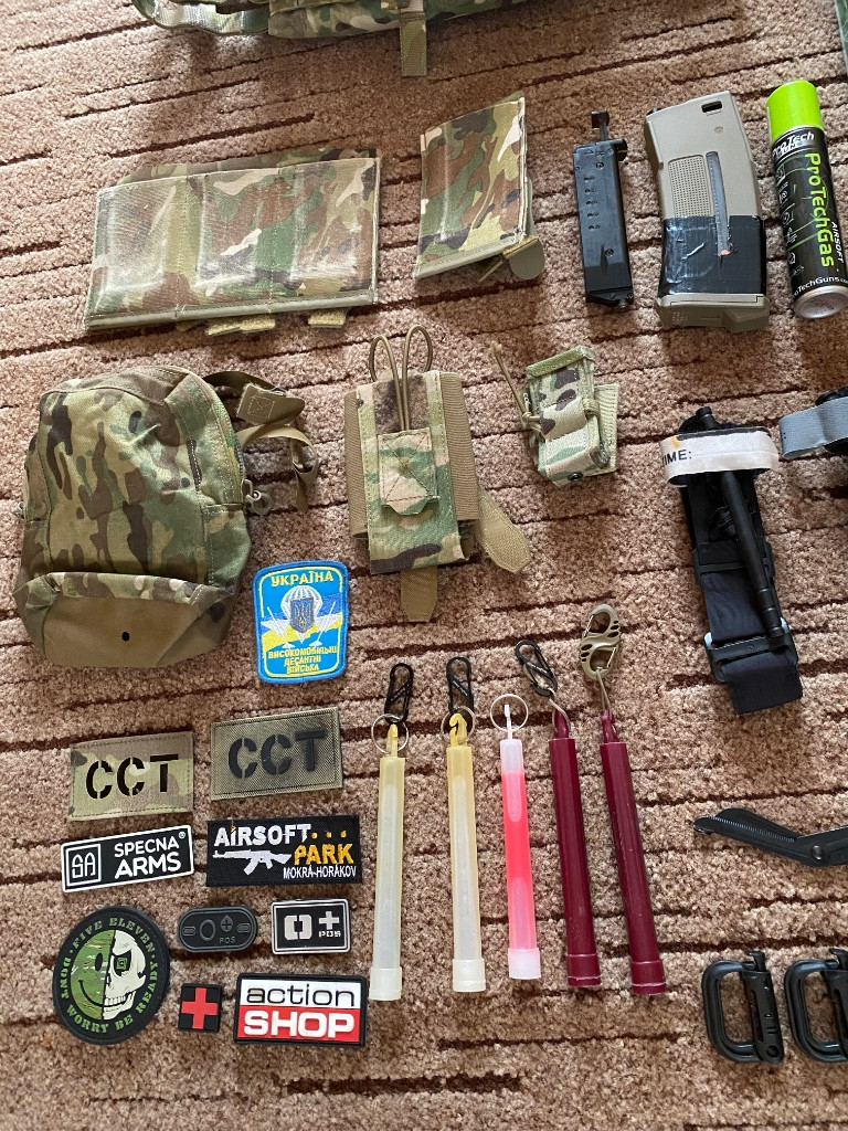 Zdravim, prodavam vse co je na fotce za uvedene ceny, ktere jsou nemenne, skoro vsechny sumky atd. na nosici platu jsou realne coz plati i u ostatnich vecech vecinou od Americkych vojenskych znacek. Lze odebrat po castech, na nosici sem vsechno vybaveni nechal pro pripad ze by mel nekdo zajem o komplet ale jinak to vsechno prodavam po castech a cena se od toho odviji. 7) Vysilackova sumka od Warrior assault systems, koupena v lete minuleho roku za cca 700, prodam za 400kč. 8) Pistolova sumka od Helikon-texu, koupena za 440, prodam za 200kc. 9) Turniket 7 gen origo, je pul roku stary, asi na 5 akcich byl, novy stal 1200kc, je nepouzity!!, prodam za 800kč. 10) Turniket 6 gen (Fake) jen na trenink, novy stal 450, prodam za 200kc. 11) Vysilacka Wouxun KG-UV9K koupena na vanoce, vsechny doklady mam a vse je puvodni, nove, nepouzite, nova stala 3690 ve sleve, prodam za 2900 14) Kulicky 0,30g bio celkem 9 nerozdelanych pytlu koupene na vanoce, 1ks = 290kč, kulicky 0,32 bio 1 nerozdelany pytel prodam za 290kč, 2 pytle bio 0,32, 2 pytle 0,30 bio a 1 pytel 0,20, vsechny jsou cca polovicne plne, prodam za 130kc/ks. 15) PTS zasobniky na 250bb tlacne, 1 piskove zasobnik kazdy stal 1200kc, koupene v listopadu, plne funkcni, byli jen na jedne akci minuli tyden jinak nepouzite, prodam za 900kc/ks.19) rychloplnicka za 40kc 21) pozicni svetla male modre, zelene a vice barevne, moc nepouzivane, nabite tak ze 3/4, nove staly 150- 200kc prodam za 75kc/ks. 23) PTT earmor, plne fukcni, nove stalo 890kc, prodam za 450kc. 24) uchyt na kameru na helmu, kov, koupeny za 600kc, prodam za 200kc. 25) Nuzky origo zachranarske piranha, koupene za 330kc, prodam za 150kc. 26) Plyn 100ml, nepouzity, prodam za 40kc. 27) Antena abbree 107cm, skladaci ohebna, koupena za 400kc, prodam za 175kc. 30) Bryle ESS Crosshar (Balisticke) poslu odkaz, nekolik certifikatu a vydrzi a ranu z brokovnice, 3 skla v baleni, bile, cerne a zlute, koupene v listopadu minuleho roku fakturu bych nasel, koupene za 3300, prodam za 2500kč. 32) ruzne nasivky, cena od 20 do 50kc. 35)Baterie 123a dobijeci fenix 700mah nove staly 215kc/ks, prodam za 110kc/ks jsou 5 mesicu stare. 38) Grip za 100kc. 39) montaz na svitilny fenix na ris za 500kc a dokoupeny tlakovy na fenix spinac za 500, komplet vsechno prodam za 2700kc