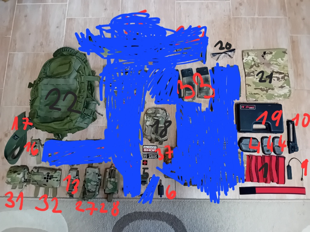 Zdravím prodám vše co je na obrázku za uvedené ceny, které jsou pevné ale při koupi víc věcí dám množstevní slevu. Všechny sumky od Helikon-tex jsou staré 1 měsíc mám k nim fakturu. Volejte nebo pište zprávy na EMAIL NEREAGUJI!!!!! 1- rozlišovaky 9 kusů prodám za 20 zvlášť nebo dám dva jako dárek ke koupi 2 nebo více věcí. 2- hlava pístu ice breaker modrá 15 mm, nepoškozená, pro plynové pistole, nová stála 500, prodám za 200 3- nášivky, každou nášivku prodám za 20kč kromě nášivky airsoft park Mokrá Horákov, nová stála 100, prodám za 50 4- úplně nové polštářky do helmy nikdy nenošené, prodám za 50 5- držák kamery na helmu, hliníkový, nový stál 600, prodám za 300 6- motor pro m4 zátěžový, plně funkční, nový stál 450, prodám za 250 7- úsťová brzda pro m4, nástřikaná pískovým Krylonem, prodám za 30 8- sklopné mířidlo troy kovové, jednou použité, nové stálo 350, prodám za 100 9- tlakový spínač k peg-15, plně funkční, prodám za 30 nebo jako dárek 10- plastové mířidlo na m4, prodám za 30 nebo jako dárek 11- zelený parakord dám jako dárek 12- lighsticky nepoužité, koupené před 2 měsíci, 3 červené, 4 modré, 4 zelené, nový stali 30, prodám za 25 13- granátová sumka od Helikon-tex, stav 95%, koupená za 379, prodám za 280 14- sumky Tasmanian Tiger na m4 zásobník, stav 85%, koupená za 455 1ks, prodám za 200 1ks 15- sumka na m4 zásobník od Helikon-tex, stav 99%, koupená za 599, prodám za 450 16- sumka na pistolový zásobník od Helikon-tex, stav 99%, koupená za 429, prodám za 330 17- opasek olivový od Invader gear, koupený za 250, prodám za 100 18- lékárnička eberlestock s technologií rip- away v multicamu, stav 95%, koupená za 1290 bez lékařského vybavení, prodám za 1000 bez lékařského vybavení nebo s vybavením za 1200, lékařské vybavení (nerozbalené a nepoužité) stálo dohromady 350 19- kufr na pistoli, stav 99%, nový stál 150, prodám za 70 20- ochranné brýle na airsoft, nepoškozené, prodám za 50 1ks 21- odhazovak multicam, stav 85%, koupený za 200, prodám za 100 22- batoh olivový od Satac, stav 75% chybí jeden zip ale dá se používat asi bez něho, protože má druhý, koupený za 1440, prodám za 200, protože už ho mám pár let a chci se ho rychle zbavit 24- nosič plátů od Emerson gearu, stav 85%, koupený za 3 590, prodám za 2200 27- sumka na dímovnicový granát od Helikon-tex v multicamu, stav 95%, koupená za 500, prodám za 350 28- sumka na vysílačku od značky Warrior assault system v multicamu, stav 95%, koupená za 799, prodám za 600 29- zádová platforma od značky Argun v multicamu na zipy, stav 95%, koupená za 2259, prodám za 1800 30- uchytný modul k nosiči plátů pro zádové platformy de zipy vhodné dokoupit k zádové platformě od argunu, pokud nemáte na nosiči zipy, stav 99%, koupený za 669, prodám za 500 31- odhazovak Helikon- tex v multicamu, stav 99%, koupený za 829, prodám za 700 32- ifak od WAS, stav 90%, koupený za 1100, prodám za 900 33- zásobníky Specna arms tlačné na 125bb polimer, 1ks šedý, 3ks černý a dva černé zásobníky nástřikané na pískovou, plně funkční, 1ks nový stojí 225, prodám za 130 ks 34- Daniel Defense® MK18 SA-P19 Prime, plně funkční, nese jen lehké oděrky, stav je tak 95%, všechny parametry máte v odkazu, v ceně je aji jeden tlačný zásobník na 125bb a baterie, kterou nemám u sebe ale možno potom vyfotit, specna nemá dělaný žádný další upgrade a vše je původní až na zadní sklopné mířidlo, které přidám k ní je od značky Troy a je kovové, Mk18 se dá dokonale naprogramovat díky nové ETU jednotce Aster 2, při rychlém jednání můžu dát slevu nebo zaplatím dopravu přes zasilkovnu s platbou na dobírku, 35- kolimátor typu Eotech, plně funkční, svití červeně i zeleně, nový stál 2000 prodám za 1000, 36- kamera s rozlišením 1080p wifi, plně funkční, prodám aji s příslušenstvím za 250, nová stála 800 37- nášivky dám jako dárek k vice věcem zakoupených na ráz Nejlepší osobní předání nebo poslání přes zasilkovnu nebo balikovnu s možností platby dobírkou nebo převodem. NA EMAIL NEREAGUJI!!!!!