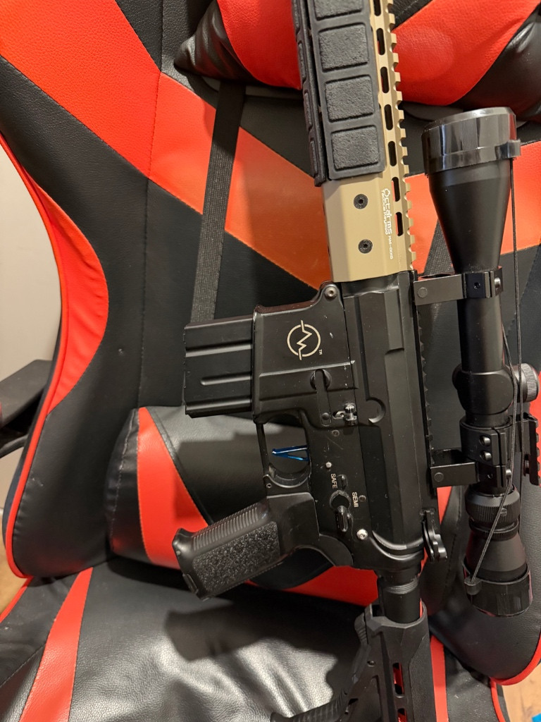 Prodám plně vylepšenou AEG-100 DMR sestavu s motorem 2,5J na 0,36. Vnitřní výbava: mechabox Gate Eon CNC V2, hop-up komora Gate Eon TDC, matice MapleLeaf Super Macaron 60 a Omega, vnitřní hlaveň MapleLeaf 6.02 410mm, převody SHS 18:1, Mosfet Perun Hybrid V2, motor High Torque 27k, píst a hlava pístu Retro Amrs 14,5, plný válec Retro Arms, hlava válce Epes, tryska Gate POM 21,25. Perfektně vypodložená a seřízená. Zbraň je dodávána s puškohledem, 5 zásobníky Arcturus 130/30 se střední kapacitou a 4 krátkými zásobníky s vysokou kapacitou, předpažbí Ares a pažba Delta Armory Freya, součástí dodávky jsou také 4 baterie 1500mah 25C. Vše je zahrnuto v ceně. Na e-maily neodpovídám, pište SMS.