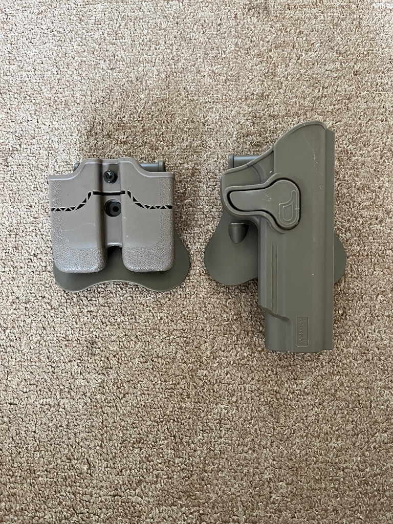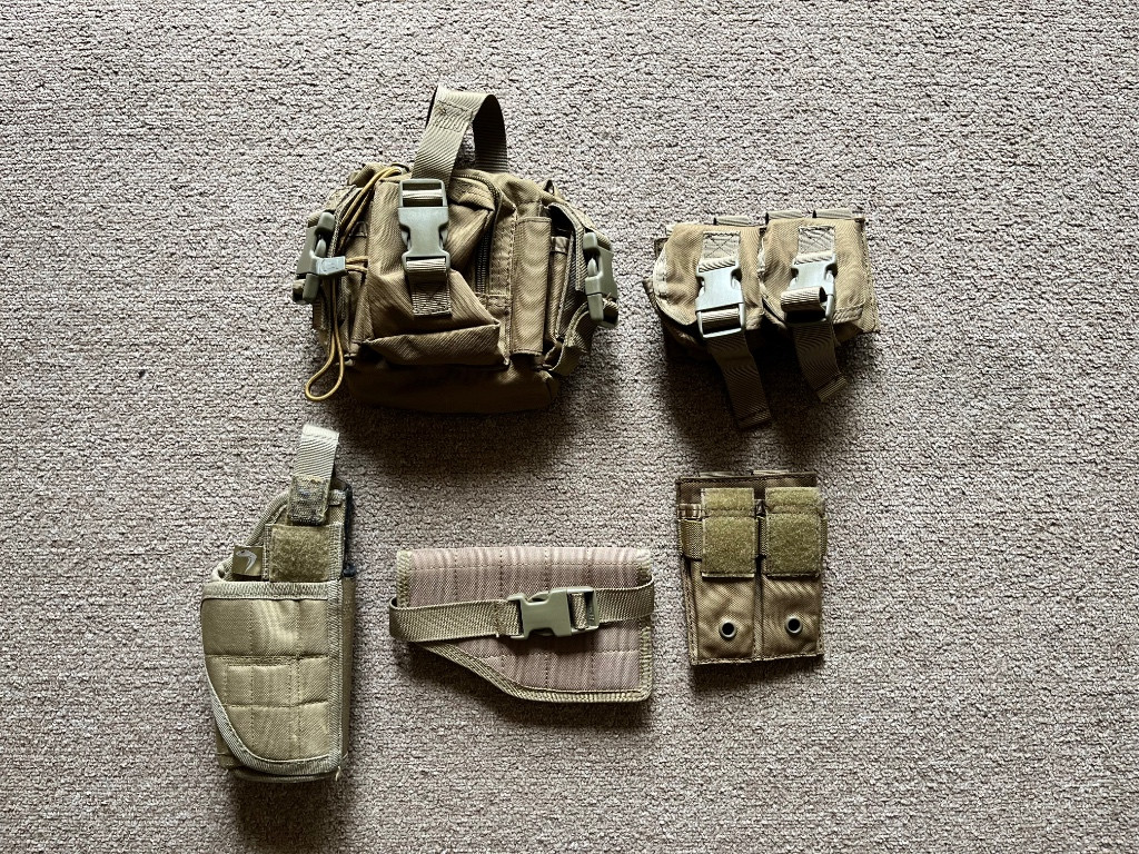 1. Stehenní panel (cena dohodou) 2. Sumky (ceny dohodou) 3. Brýle s antifog větráčkem (cena dohodou) 4. Mouth guard s úchytem na fast helmy (cena dohodou) 5. Origo baret Čs. Armády (nový) (cena dohodou) 6. Amomax pouzdra na colt1911 (200kč za oba)