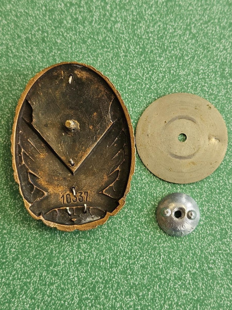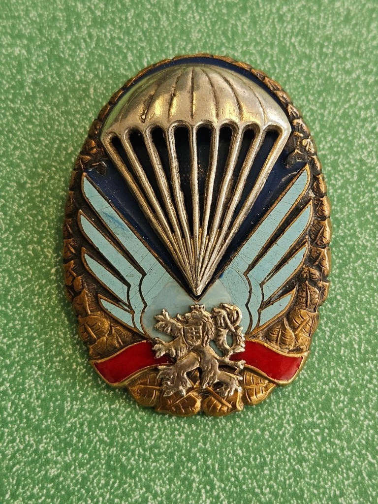 Dobový originál, nošený, bronzová varianta, stav, viz aktuální fota. nebráním se rozumné dohodě. Platí do smazání ( ze serveru UTON) Paraplacky: Odznaky byly zavedeny v roce 1948 a používány do roku 1951. Mají tvar elipsy a jsou 44 mm široké a 60 mm vysoké. Odznak se skládá z věnce, padáku a lva znázornujícího státní znak. Podložka má eliptický tvar a na její spodní straně je vyryto evidenční číslo. K věnci je připevněna čtyřma háčky. Padák je k podložce připevněn dvěma a lev třemi háčky.