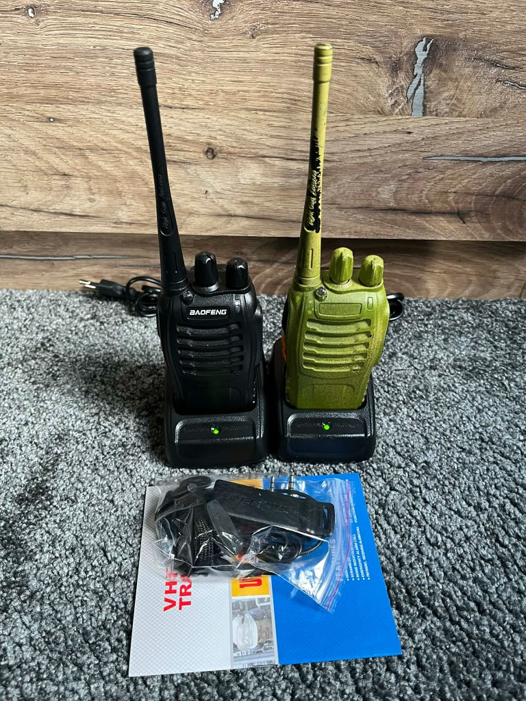 Součást balení 2xradiostanice Baofeng BF-888S 2x1500mAh Li-ion akumulátor 2xUHF základní anténa 2xstolní nabíječka 2xklips na opasek český návod Headset Jedna nepoužitá druhá pouze přebarvena a použitá na jedné akci