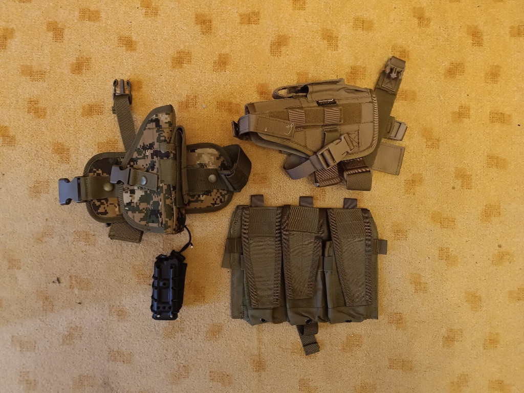 Vesty každá za 550,- Pistolová pouzdra každé za 250,- Trojsumka na AR zásobníky za 100,- Sumka na pistolový zásobník 50,- Při koupi všeho dohromady 1500 Pouze osobní předání Praha 4