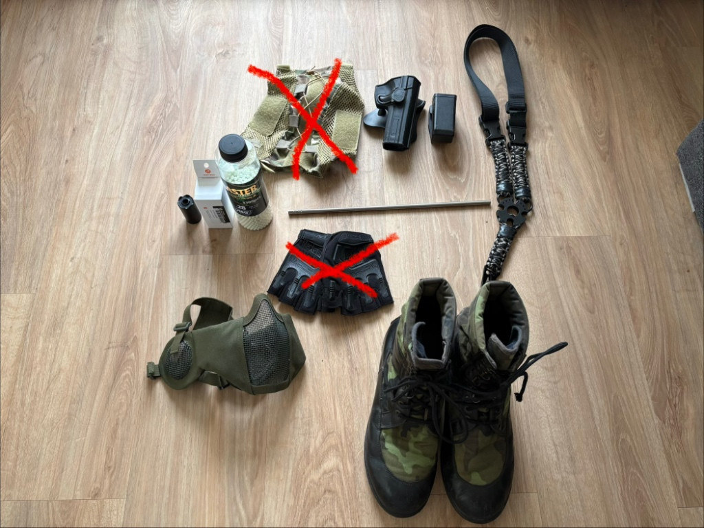 Prodám věci, co se mi válí doma nevyužité. Při odběru 3 a více věcí, poštovné zdarma. Platba předem nebo příplatek za dobírku. 1. Policejní kombinéza použitá na velikost postavy 176cm. 400,- 2.Precizní hlaveň 6.01mm x 370 od Action Army. 200,- Ochranná obličejová maska v barvě Oliva 125,- Polimerové samosvorné pouzdro na pistoli CZ SP 01 shadow. 170,- Samosvorné polymerová sumka opasková na zasobníky používaná na pistoli CZ Sp 01 Shadow. 150,- Jednobodový nepoužitý popruh Legron 350,- AČR vycházkové kanady vz95 použité velikost 280 (43) . 400,- Montáž pro LPVO s libelou nová 300,- Nasvětlovací tlumič Brighter C od Acetech * ASG blaster nasvětovaci zelené 0,28g kuličky cca 2000ks. Cena za oboje 950,- Prodávám tlumič pouze jako celek s kuličkami. Brýle ESS Stryker. Brýle jsou používané a bez krycí mechovky ventilace brýlí viz obrázek. Nemá vliv na funkci naopak tolik se nemlží. Dám k brýlím i nové, tmavé sklo .(1200,-) V Případě zájmu nebo bližší info, neváhejte napsat.