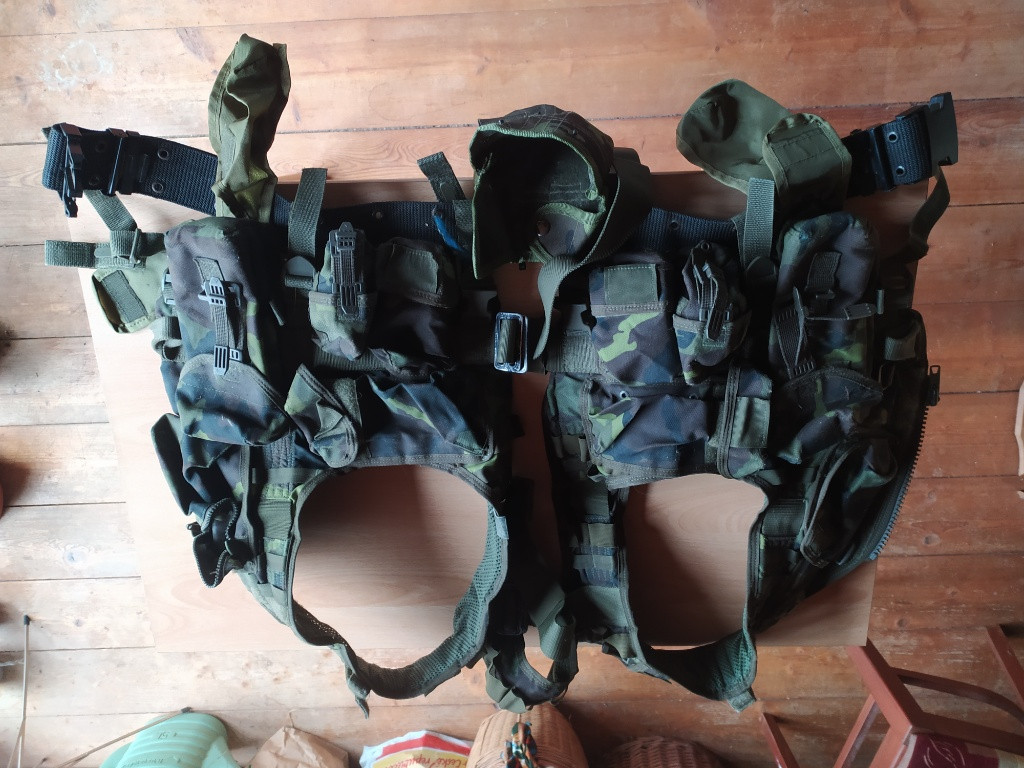 Vz. 95 para vesta s páskem a sumkama mp5 - 350. Černá vesta -150. Dvoubod popruh přidám k vestě, jinak - 20.