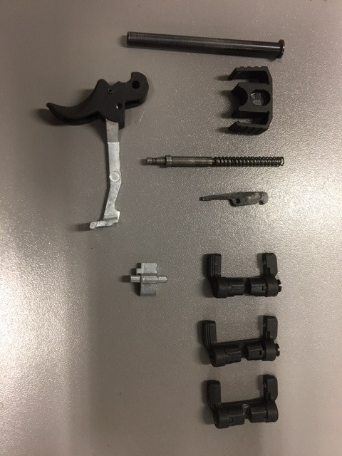 Prodám díly dle foto. vodítko vratné pružiny- 200kč, záchyt kohoutu- 150kč, pojistka komplet- 450kč, zápalník+pružina- 200kč, spoušt- 100kč, spouštová páka- 100kč, vytahovač- 50kč, demontážní šoupátko(pokud vám při výstřelu padá závěr z rámu) - 450kč