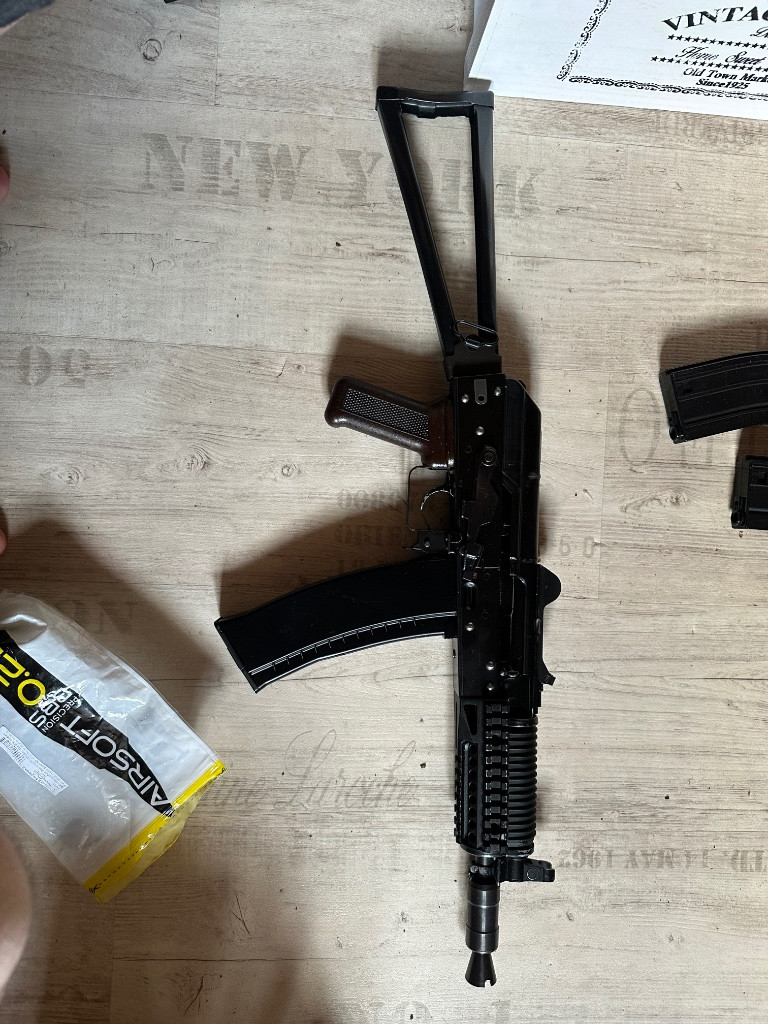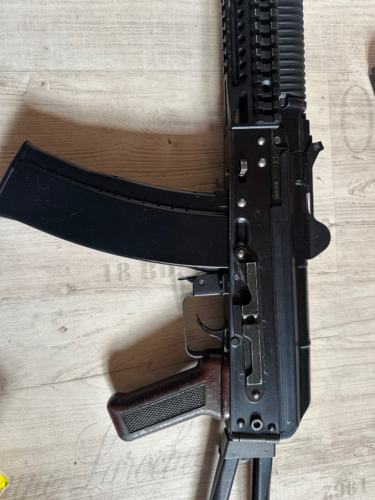 Prodám aks74u od we, zbraň je z vnějšku v hezkém stavu, ale je nefunkční. Při výstřelu jen cvakne. Zásobník netěsní. Ke zbrani je i púvodní dřevěné podpažbí (nadpažbí asi nenajdu) Cena 4300