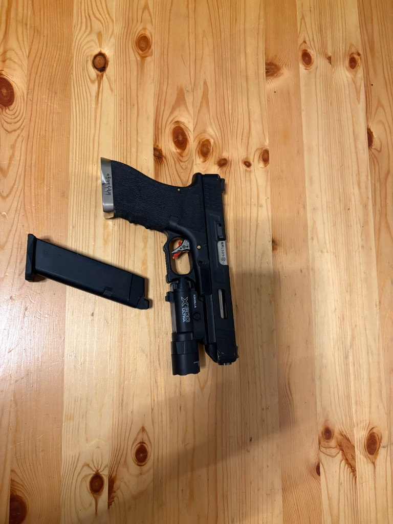 Prodám Glocka od WE Mnou nestříleny by jen na výstavě prodam ho se svítilnou a jedním zásobníkem plus 3D podstavec pro glock s držákem na 3 zásobníky Zásobníky k tomu za připlatek můžu přihodit mam jich tu dost