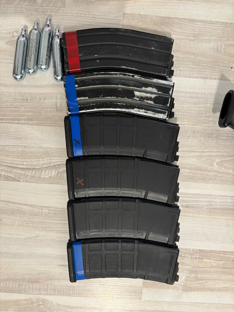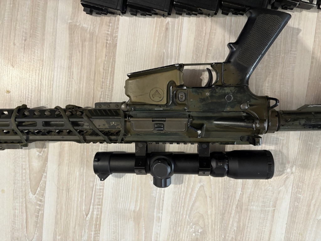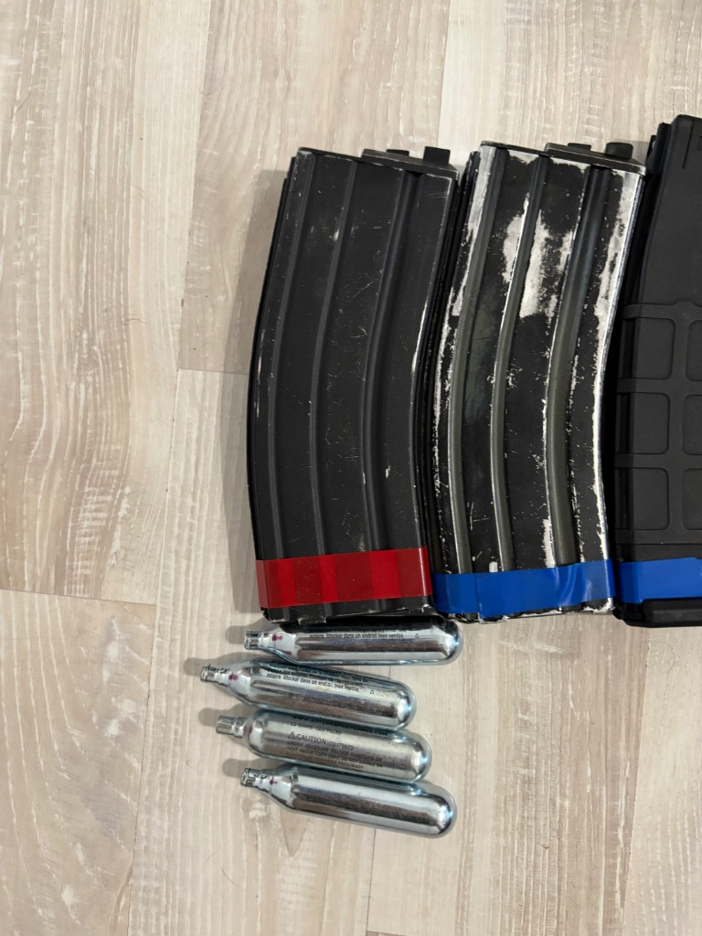 Nabízím k prodeji plynovou airsoftovou pušku M4. Zbraň má už něco odehráno, což je znát na jejím stavu, nicméně je plně funkční. Doporučuji menší servis, aby byla ve 100% kondici. Odehrál jsem s ní dvě hry a plynovky pro mě nejsou to pravé, proto ji posílám dál. Na zbrani je nová hop-up gumička a nová hlaveň. Prodávám přesně tak, jak je na fotografiích.1x Stanag na CO2 bombičky - funkčí, 1x Stanag na plyn-funkčí. 4x Pmag- 2 funkčí,2 s křížkem (nutné Přetesnit) V případě dotazů mě neváhejte kontaktovat. Prosím psát SMS.