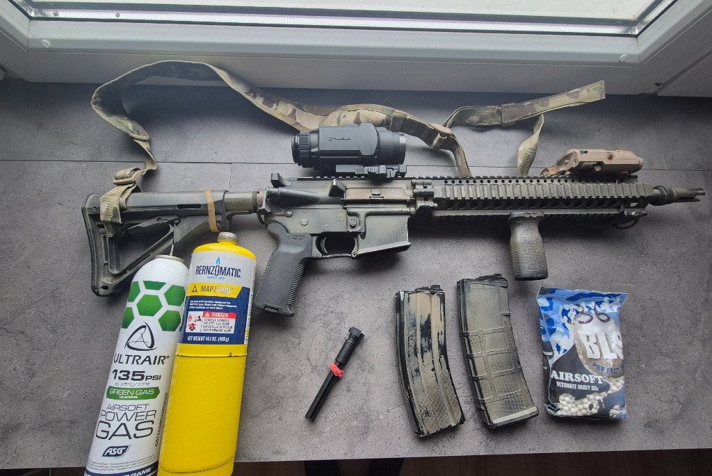 Prodám we m4 gbb, měněná pažba a pažbička magpul CTR, předpažbí mk18 styl, hlaveň a hop gumička na maple leaf a kolíky těla aby se nevaklalo. 2x zásobník + cca 1300 .36g kuličky propylen a greengas (oba plyny cca 50%). Plynovka převážně používaná na sušení. Vystříleno cca 700bb Závady: klasicky nefunguje záchyt závěru po dostřílení zásobníku, nalomená tryska (nemá vliv na funkčnost) a chybí gasblock kvůli výměně předpažbí. po domluvě můžu přidat Anpeq 15 FMA zelený laser + IR preferuji osobní předání Plzeň +20km popř pošlu videa stavu a střelby
