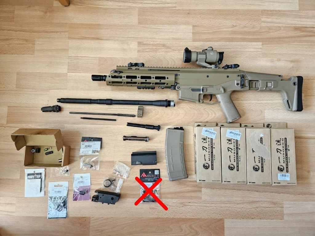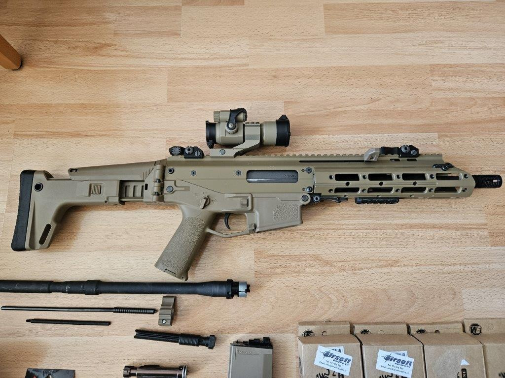 Prodám WE Masada GBB, barva FDE. Asi nejlíp zpracovaná AS zbraň. Zkrácená CQB hlaveň. Původní hlaveň vč. původního flash hideru a vnitřní hlavně a hop komory přikládám. 5 zásobníků, prakticky nových (není nutno se zbraní koupit všechny). už dlouho nehraju a začíná mi to zabírat místo. K tomu spousta ND, gumičky... Ve zbrani vyměněný závěr, původní přikládám. Cena je bez kolimátoru, resp. kolim po dohodě.