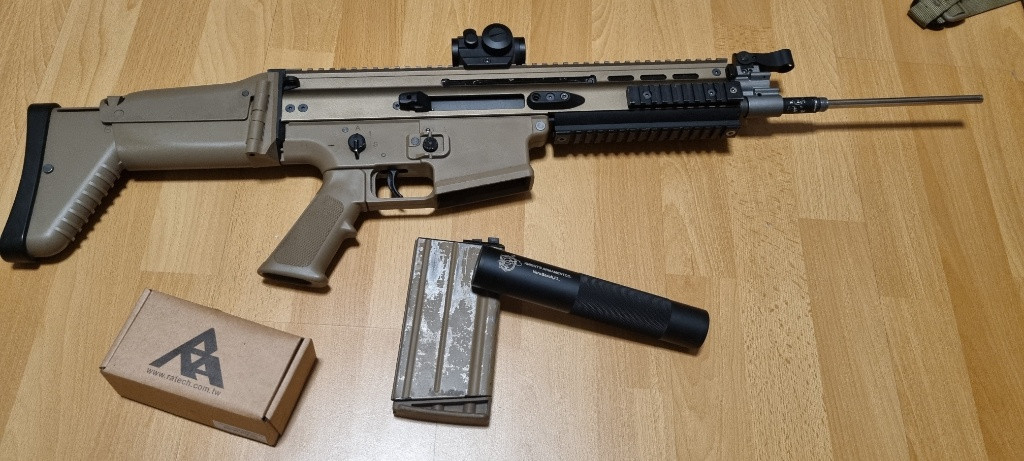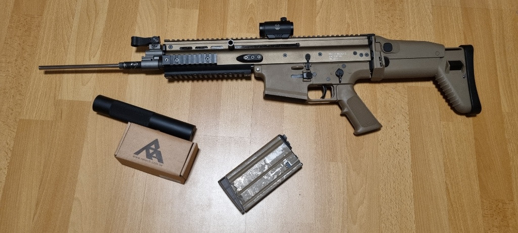 Dobrý den , prodám scar h gbb s 1 zásobníkem na green gas Ve zbranu je měněno: ra tech mechanika,hlaveň,hop up gumička. Na zbrani je theta optics red dot, tlumič s výplňí (pěna + pružina). Kvůli upu si myslím že cena odpovídá. Dodám tak jak je na foto.(viz foto a popisek) Osobní předání není problém, ale můžu i poslat. Pište na whatsapp nebo klidně i zprávy rád odpovím.