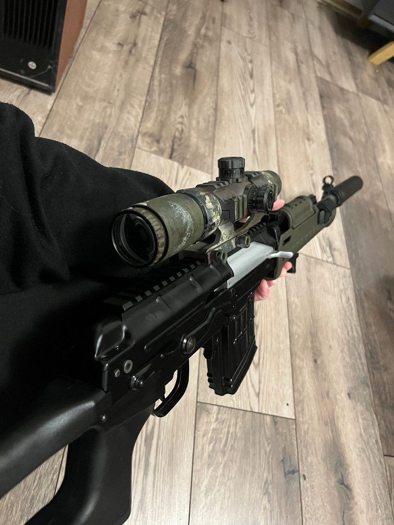 Prodam upravene plynove SVD od znacky we. Na zbrani je dopasovane magpul predpazbi pro AK(original) a dust cover z cyma verze s ris listou. ulozeni vratne pruziny dopasovano na 100% a cely dust cover sedi po zajisteni dokonale. Nastrel optiky neni problem. Dale ve zbrani ML gumicka a omega pritlak, poseidon ice pick klapka v trysce a poseidon podlozka pod vratnou pruzinou pro rychlejsi chod. Zbytek original. Vse je mozne prestavet do puvodniho stavu. V planu bylo dat kratkou hlaven a lamaci pazbu. Ke zbrani mam dalsi 2 zasobniky se sumkou a 3d nastavec na rychloplnicku. Zbran byla hrana parkrat jinak jen lezela obcas se neco upravilo a otestovalo ale uz skoro nehraju a mam tu toho az moc