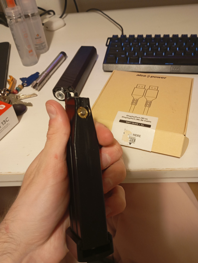 Vše, co vidíte na fotografii, je to, co mám. K tlumiči býval speciální klíč, nevím, kde je. V Praze, osobně.