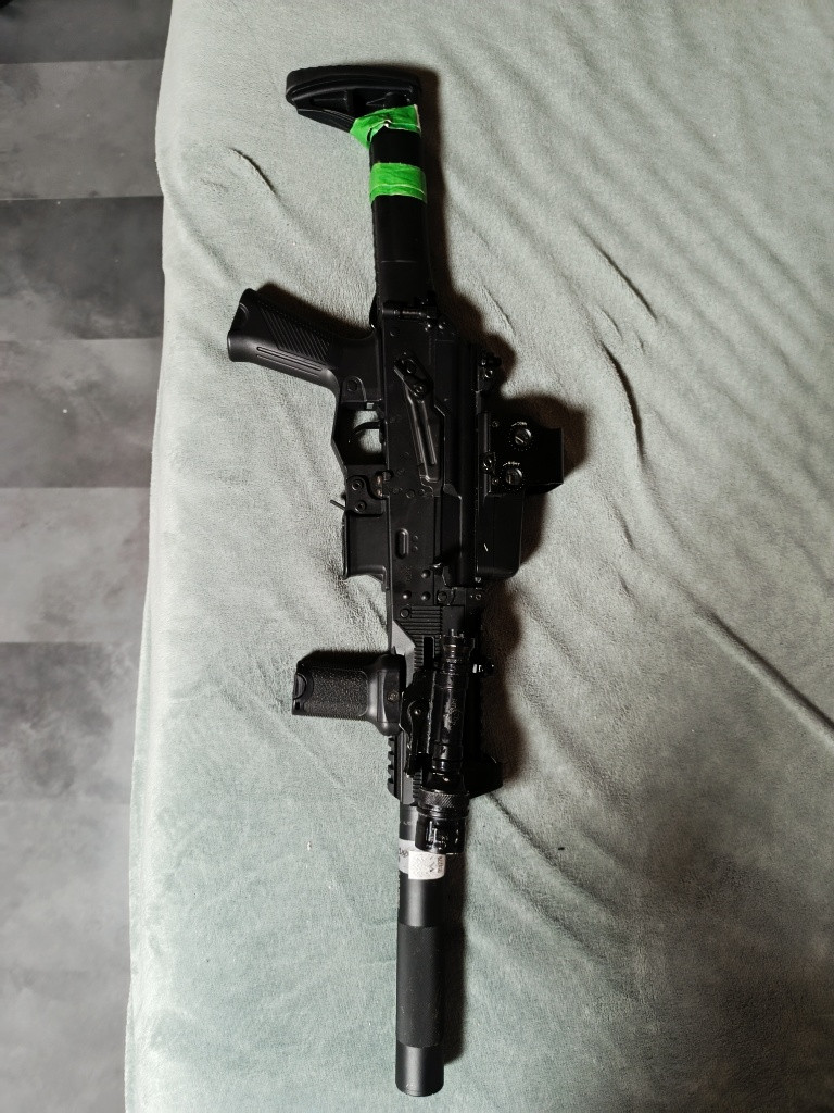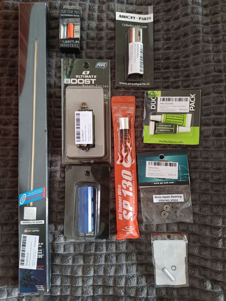 Končím s arsoftem. Prodám AEG v upu. 2J s 30g bb. 4 tlačné zásobníky, holographic Šigut, tlumič a jedná baterka 11.1v.