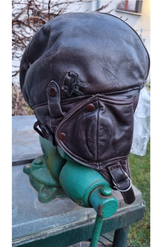 WW2 letecká kukla, helma Francie 1939/40 po CS důstojníkovi Stále plně funkční stav. Kůže měkká a vláčná, helmu nosil člověk s větší hlavou. Žádná oxidace a větší poškození. TOP stav. Úchyty - háčky na kyslíkovou masku nepoškozené. Poslední foto je ilustrační. NEČIŠTĚNO VŠE VIZ FOTA.