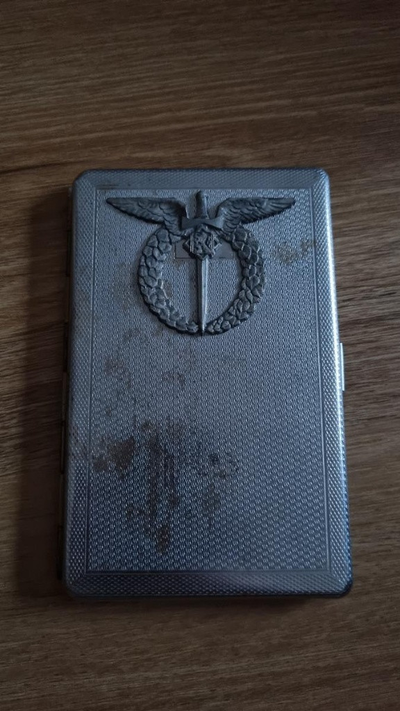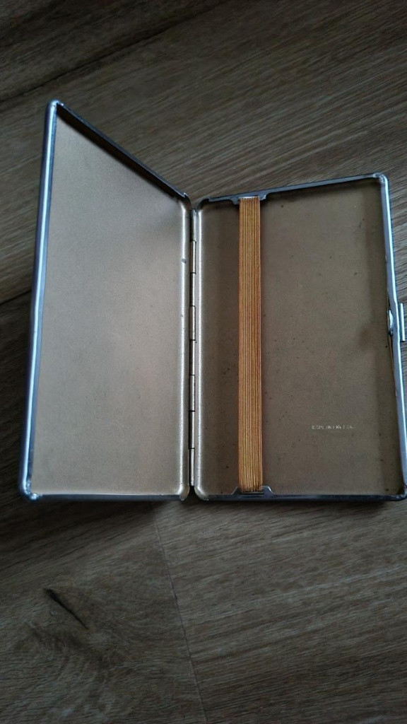 WW2 RAF tabatěrka cs pilot letec 1940 - 45 ENGLAND ZNAČENÁ funkční UVNITŘ VYRAŽENO MADE IN ENGLAND Tabatěrka získána spolu s dalšími leteckými věcmi z pozůstalostí. Rozměry : 13,5 cm x 8,5 cm 0,9 cm STAV VIZ: FOTO funkční včetně zapínání