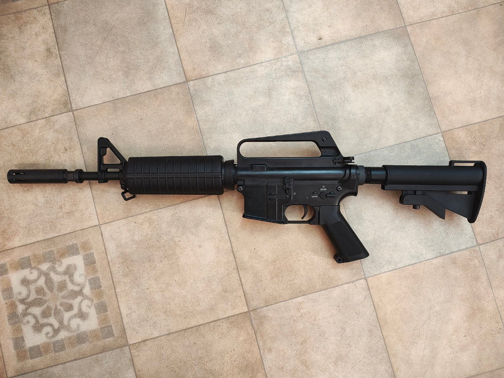 Dobrý den, prodám XM177E2, kterou jsem si z důvodu použití rychlovýměny pružiny složil ze dvou výrobců. Spodní část je Specna Arms se SAEC systémem. Horní část CYMA XM177. Všechno střílí jak má, úsťovka na základní pružině 130ms, jediný neduh je že nezachytavá plech závěru v zadní části, ale musí se pro nastavení hopupu podržej, jako to byvalo u starších zbraní. Zbraň má mechabox CYMA Blue Edition, čili elektronickou spoušť s MOSFETEM, tichá hlava válce, píst s kovovými zuby, DeanT konektor. Sestaveno pro baterie lipol 11,1V. Důvod prodeje je pořízení věrnější kopie od jiného výrobce. Ke zbrani 2 točáky.