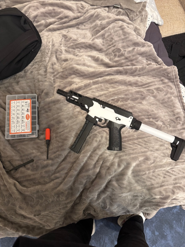 Model je vyroben metodou FDM z materiálu PLA+, který zajišťuje vysokou pevnost, tvarovou stabilitu a nízkou hmotnost. Konstrukce je navržena pro snadnou údržbu a rychlou výměnu jednotlivých komponent. Vnitřní mechanika: • Kompatibilní gearbox V3 v konfiguraci AK • Standardní elektrický pohon s Li-ion baterií 2000 mAh • Dva režimy střelby: semi a full-auto Kompatibilita a modulárnost: • Podporuje všechny zásobníky pro MP5 • Tělo umožňuje instalaci jakýchkoli doplňků na montážní lištu: kolimátor, taktická svítilna, laserový zaměřovač • Možnost tisknout a měnit vlastní externí díly: rukojeť, mířidla, pažba, kryty Konstrukční vlastnosti: • Optimalizovaná geometrie pro maximální pevnost 3D výtisku • Nízká hmotnost vhodná pro dynamické použití • Výstavní prototyp s možností úprav dle požadavků V případě zájmu o bližší technické informace nebo výrobu na zakázku mě kontaktujte e-mailem nebo přes Telegram/WhatsApp: +420 722 239 476 nikmos2000@gmail.com