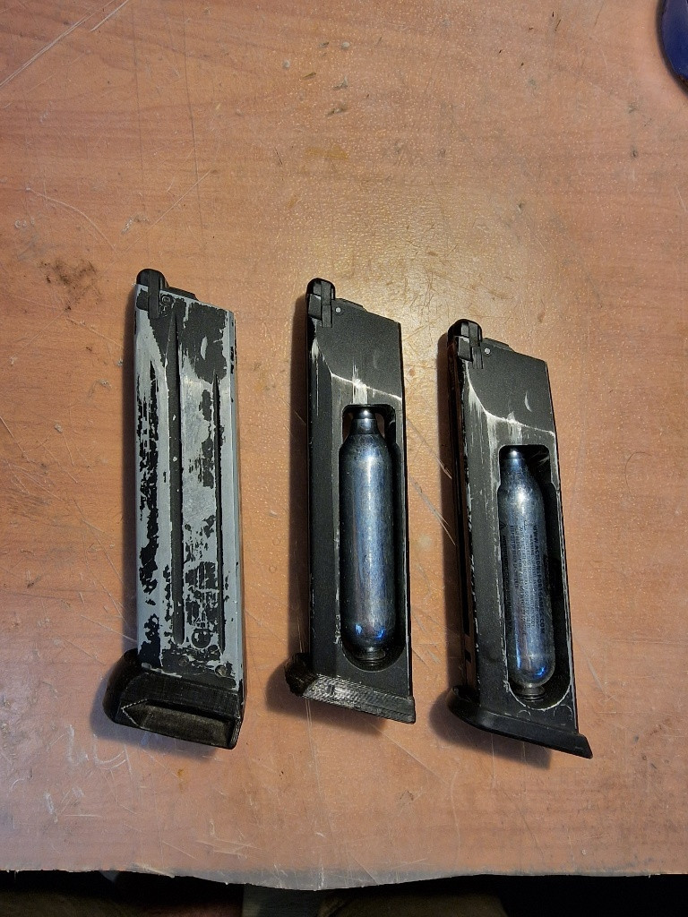 Prodám zásobníky na CZ P-09. Dva zásobníky na CO2 a třetí na green gas. Všechny tři zásobníky těsní. Cena 1200Kč za všechny / 400 Kč/ks.