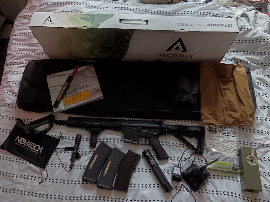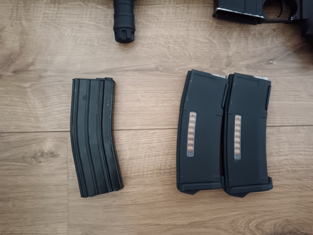 Zbraň je ve velice dobrém stavu k ní přidáme spoustu doplňků, brýle, dávkovač kuliček, kuličky, baterku, světlo, pouzdro na zbraň atd. Syn již nevyužije, zbraň je funkční a v dobrém stavu , samozřejmě má známky použití. Jinak vše buď nové nebo jako nové. Více fotek můžu poslat. Při rychlém jednání možná sleva.