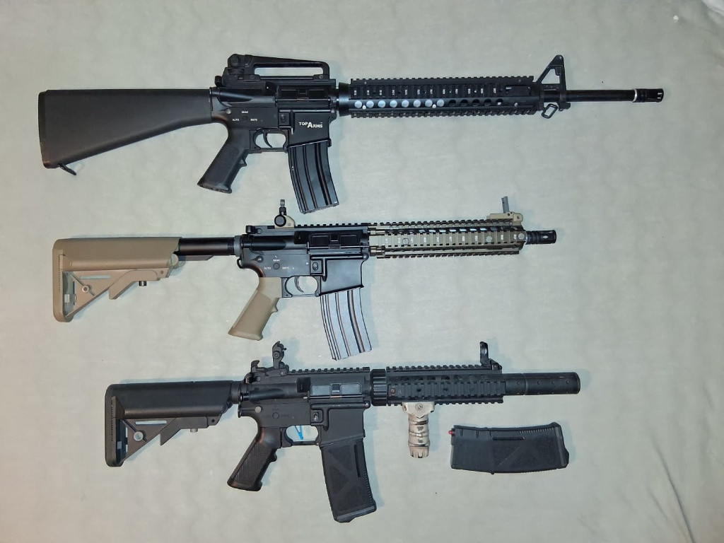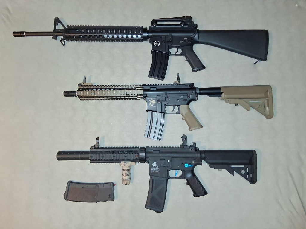 Prodám: 1) M16 A4 RIS od Toparms, fungl nový kvér, nikdy nebyl venku. Ve stavu jako z obchodu. PC byla 5000kč. Cena 4000kč. 2) MK18 mod 1 od EC ( EC-603), 1x venku, jeden malý oděrek na těle, jinak stav jako z krabice, PC byla 5200kč. Cena 4000kč 3)M4 od Lancer tactical, polymerové tělo, skoro kompletní stavba, origo pouze hlaveň a motor, jinak vše UP. Uvnitř prowin komora, ASG Ultimate zesílený mechabox s 9mm kuličkovými ložisky, Kompletní vzduchotechnika SHS ( píst + hlava, válec + hlava, tryska), CNC kola 18:1 SHS, pružina m120. Zvenku modrý přepínač a rychlospoušť. Ke zbrani 2x tlačný zásobník, tlumič, rukojeť. Cena 4000kč ( což není ani cena upgradu )