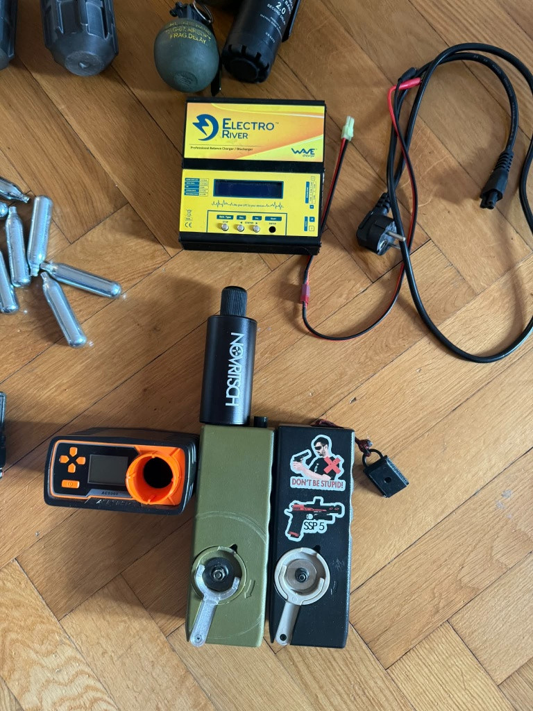 Zdravím po velké čistce mi zbylo toto: 2x 3d tištěné miny 1x elektronicky flashbang od T238 novritsch bryle spoustu CO2 bombiček nabíječka baterek funkční ale vypadl čudlík Gas holder canister - novritsch 1x origo odin rychloplnička se silikonovou výstelkou 1x knockoff odina baofeng vysílačka se sluchátkem Kolimátor Sightmark Ultra Shot M-Spec CO NENÍ VYPSANÉ VÝŠE, JIŽ NENÍ