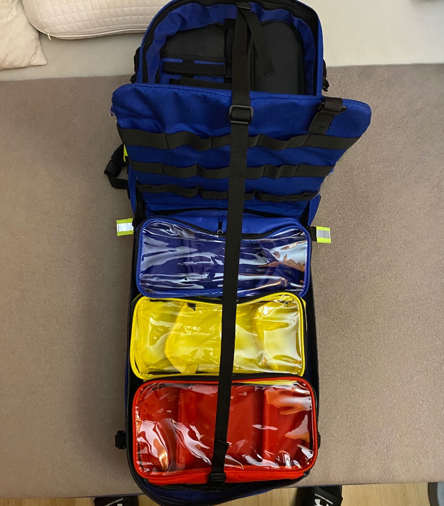 Zdravotnický batoh -značka Elite bags -nový, nepoužitý, nepoškozený -diagnostika nepoužitá -vybavení k dispozici: •Fonendoskop •Tonometr •Glukometr •Oxymetr •Teploměr •Diagnostické pero •2x set dlah (prstové, horní a dolní končetiny) •SICH turniket •Krční límec •Ambuvak + příslušenství (filtr, hadička) •Ústní vzduchovody •Infúzní sety + hadičky 90 a 150 cm •Různé velikosti kanyl •Šicí nástroje -prodej pouze v kompletním stavu -záruční listy k batohu a vybavení samozřejmostí včetně veškeré dokumentace k diagnostice (návody, apod.) -cena: 6.500,-