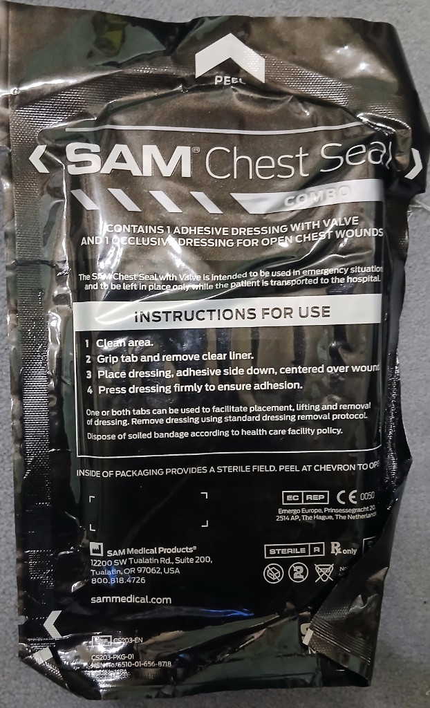 Hemostatická gáza Celox Z-Fold, zdravotnický prostředek určený k rychlé zástavě život ohrožujícího krvácení. Obsahuje 8g chitosanu na jedné gázové pásce. Rozměr pásky je 7,6 cm x 1,5 m. Je určena pro dočasné vnější použití při silném krvácení. Funguje nezávisle na normálním srážení krve a vytváří adhezivní gel k utěsnění rány. Celox Rapid Gauze / gáza na rychlé zastavení krvácení Celox gázu, která obsahuje speciální hemostatické částice, jenž rychle a účinně zastavují krvácení. Tento inovativní materiál pracuje tím, že urychluje srážení krve na místě zranění, což je zásadní pro rychlou stabilizaci pacienta. Gáza je snadno aplikovatelná, což z ní činí ideální volbu pro první pomocníky i profesionály v oblasti zdravotní péče. Celox gáza je sterilní a hypoalergenní, což minimalizuje riziko infekce a nepříznivých reakcí. Je vhodná pro použití na různých částech těla a lze ji snadno přizpůsobit různým typům zranění. Je to spolehlivý nástroj pro záchranu životů v situacích, kdy rychlá lékařská péče není okamžitě dostupná. 700,-kč - SAM Chest Seal Combo, což je kombinované hrudní krytí určené k ošetření otevřených ran hrudníku v nouzových situacích. Skládá se z jednoho adhezivního krytí s chlopní (vented) a jednoho okluzivního (geclusiv) krytí bez chlopně. Zde jsou klíčové informace o produktu: Určeno pro ošetření život ohrožujících otevřených poranění hrudníku, která by mohla vést k tenznímu pneumotoraxu. Designováno pro silnou přilnavost i v extrémních podmínkách, jako je přítomnost potu, krve, ochlupení nebo vody. Obsahuje jednocestnou chlopeň (ventil), která umožňuje únik vzduchu z hrudní dutiny, ale brání jeho nasávání zpět. Jednoduché a rychlé použití dle přiloženého návodu na obalu. 700,-kč - Hemostatická gáza Celox Z-Fold. Zdravotnický prostředek určený k rychlé zástavě život ohrožujícího krvácení. Gáza je napuštěna 8 g chitosanu, přírodního polymeru získávaného ze schránek krevet, který urychluje srážení krve nezávisle na přirozeném koagulačním systému těla. Je navržena pro rychlou aplikaci do rány pomocí Z-fold balení. Účinně zastavuje silné arteriální krvácení, a to i u pacientů užívajících antikoagulancia (léky na ředění krve). Používá se pro dočasné vnější použití v případech traumatického krvácení, jako jsou hluboké řezné rány nebo střelné rány. Rozměry jednoho pásku gázy jsou 7,6 cm x 1,5 m. 700,-kč Cena za kus www. Balíkovna.cz zdarma Při nákupu všeho daruji vše co je na poslední fotce. (nůžky, pean, pinzeta)
