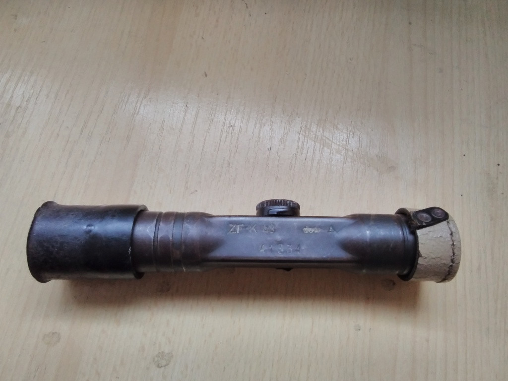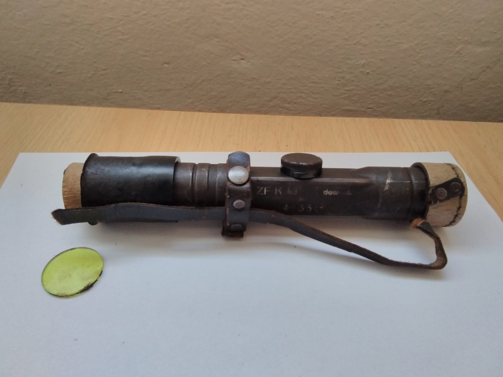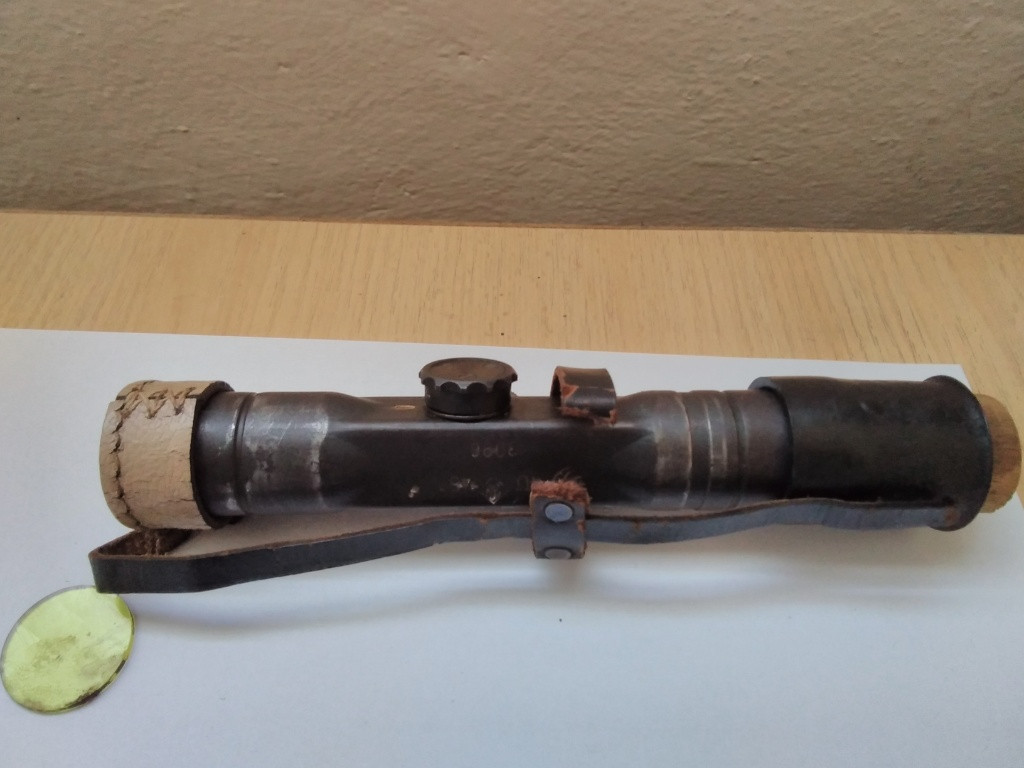 Nabízím k prodeji německý vojenský puškohled zf 4 .Dow v originálním stavu plně funkční, pohyb kříže mírně zakalený popraskané kožené krytky , chránítko posuvu kříže ,gumova očnice a Sluneční filtr vše zaručený originál z druhé světové války stav viz foto dnes již velice obtížné k sehnaní originalitu zaručuji vrácením peněz