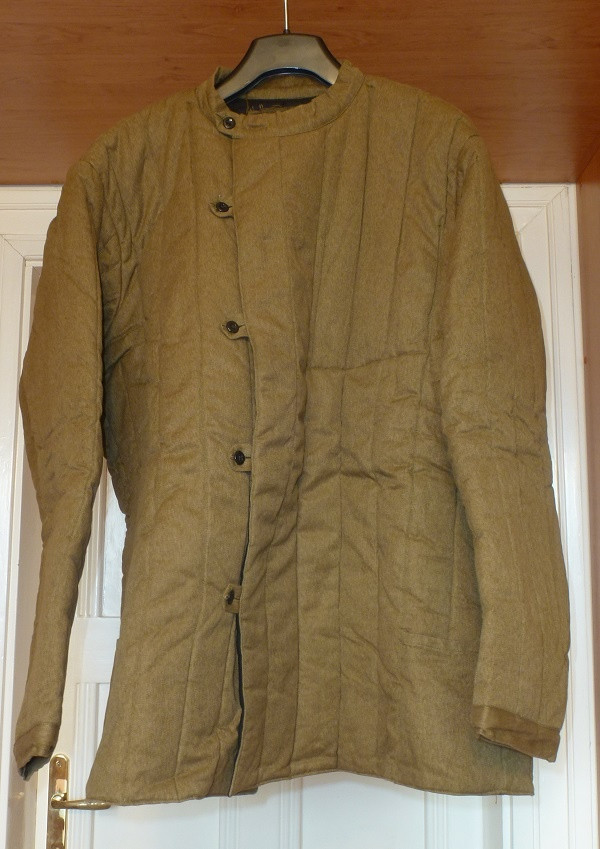Zimní prošívaná bunda a kalhoty (tělogrejka) Rudé armády, 2. sv. válka. Bunda výroba Textiler.cz, kalhoty originál 50. – 60. léta. Velmi mírně použité, v perfektním stavu! Rozměry: bunda - prsa: 130 cm, záda: 78 cm, rukávy: 65 cm, ramena 54 cm, kalhoty – pas: 92 cm, délka: 110 cm. Na postavu výšky cca 185 cm. Možnost osobního předání v Praze. Inzerát platí do smazání!