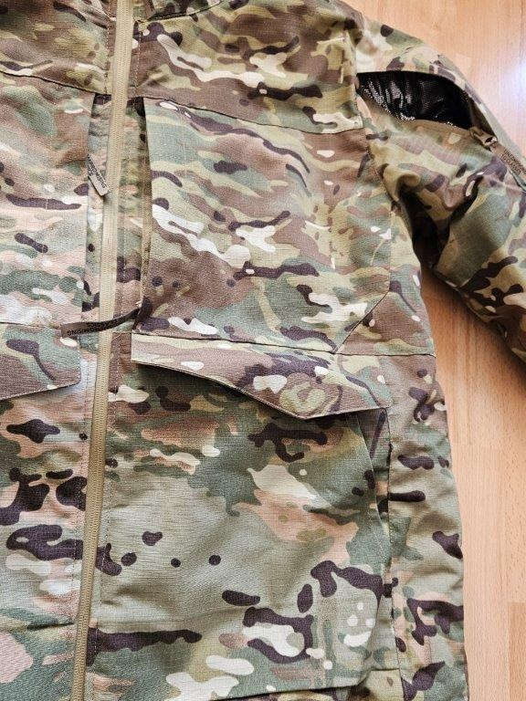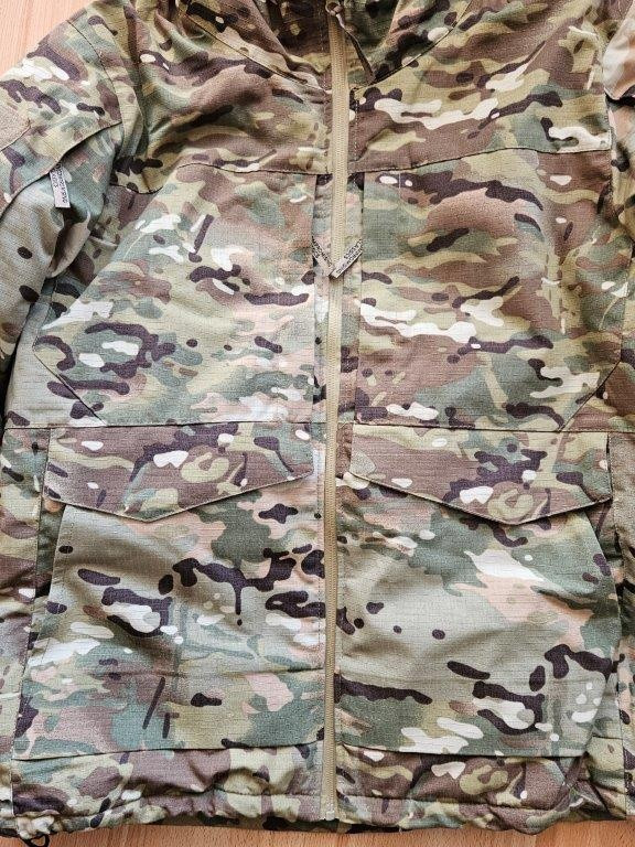 Prodám vatovanou bundu v multicamu, Kapuce a podšívka odrážející teplo. 6 kapes na trupu+2 na rukávech. Udávaná velikost je XL, ale skutečná je tak L a plandat nebude ani na někom kdo má normálně M. To je také důvod prodeje - je mi malá. Bunda je nová, jen jsem vyzkoušel velikost.
