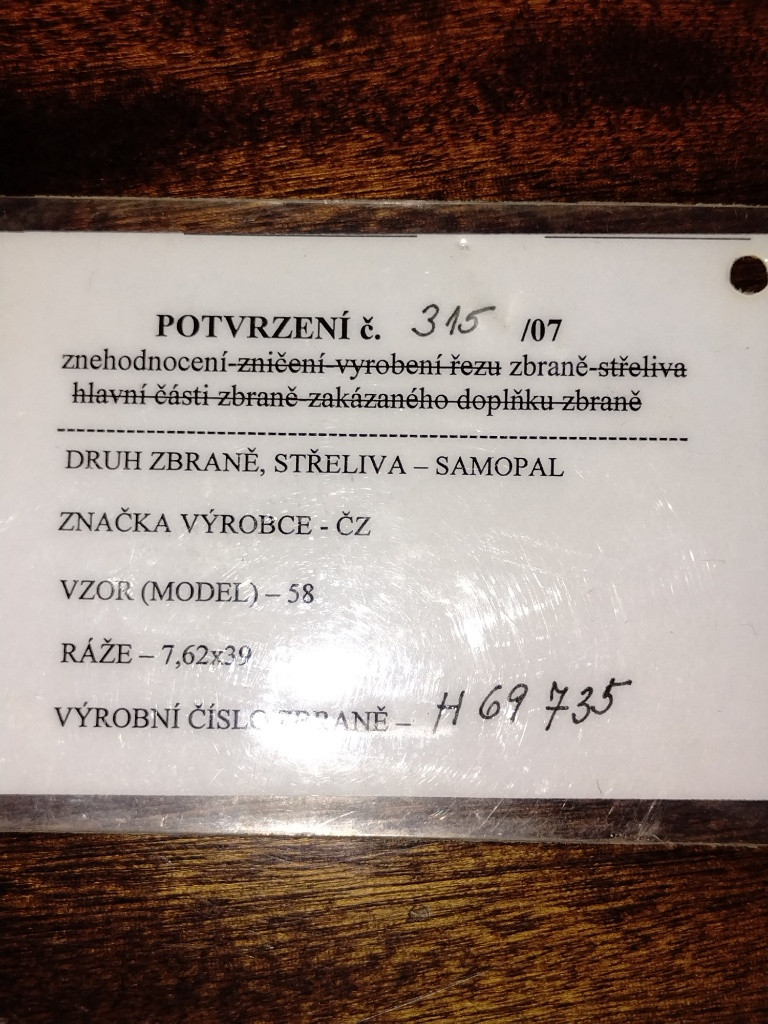| Znehodnocený samopal vz.58 | Dlouhé | 01. 06. 2025 16:14 |