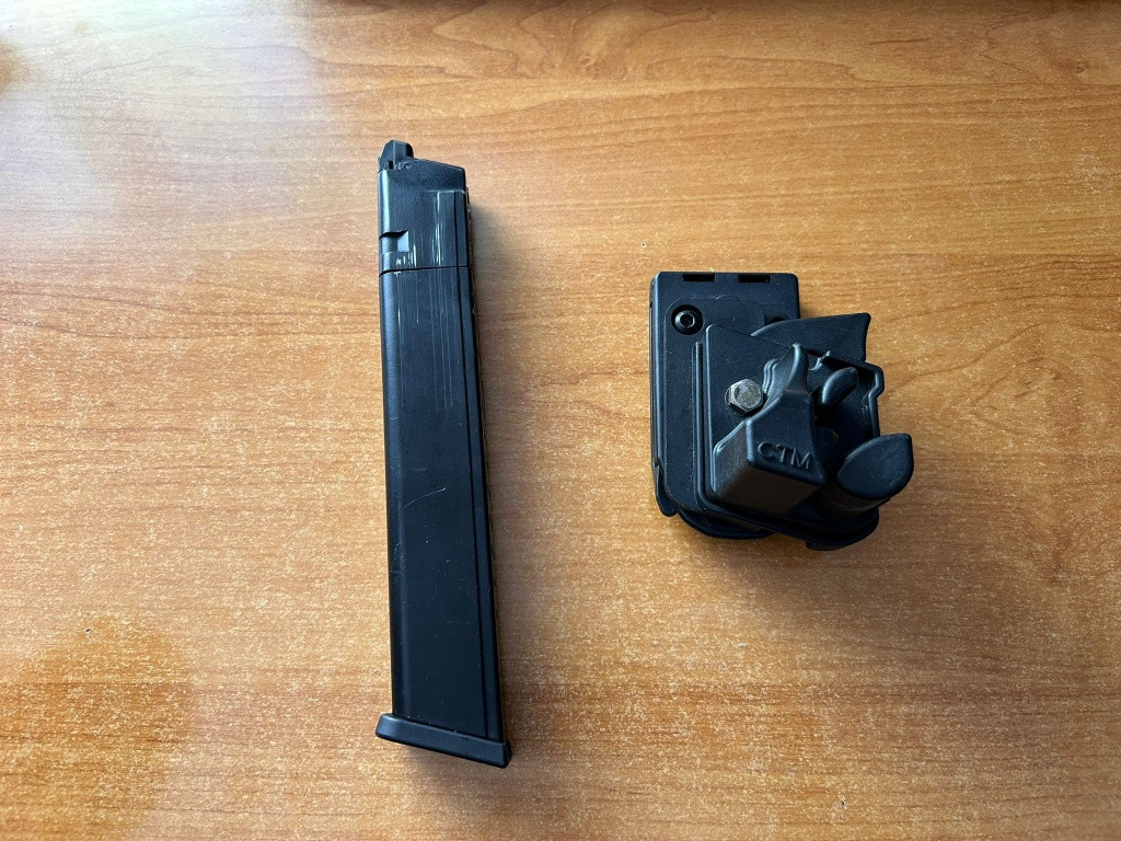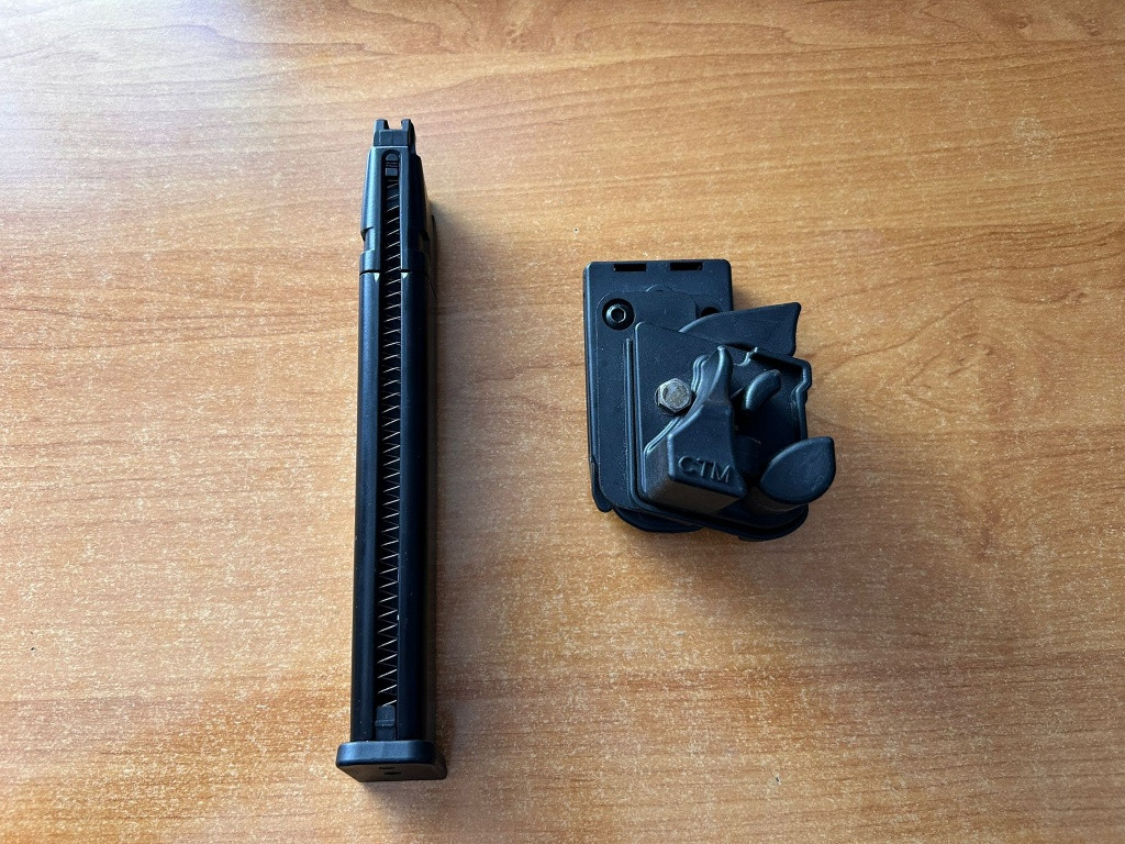 Prodám dlouhý zásobník pro AAP01 od Action Army. Nesedí mi do zbraně. Těsní. Cena 600kč Dále opaskové pouzdro pro AAP01, cena 300kč
